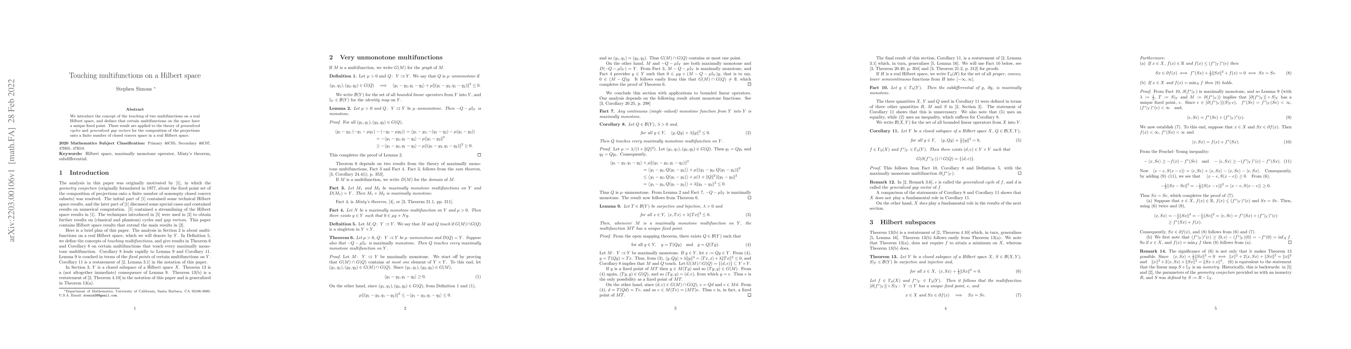 Researchers introduce a new concept for touching multifunctions on real Hilbert spaces, leading to unique fixed points and applications in generalized cycles and gap vectors.