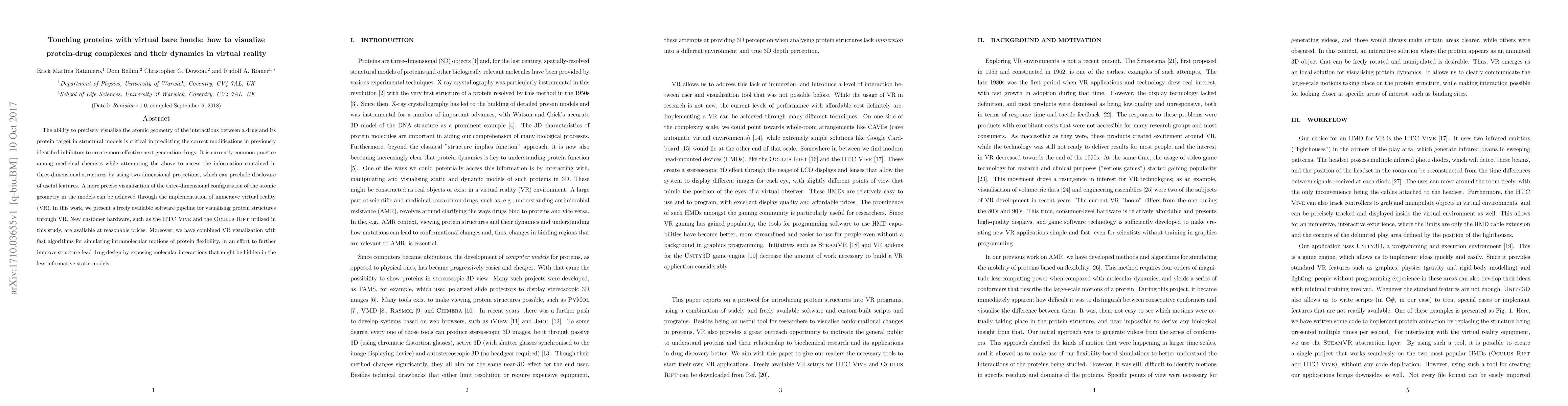 This paper introduces a new software pipeline for visualizing protein-drug complexes in immersive virtual reality, aiming to enhance the understanding of atomic interactions and protein dynamics. The authors combine VR technology with fast algorithms to simulate protein flexibility, offering a more comprehensive approach to drug design compared to traditional two-dimensional projections.