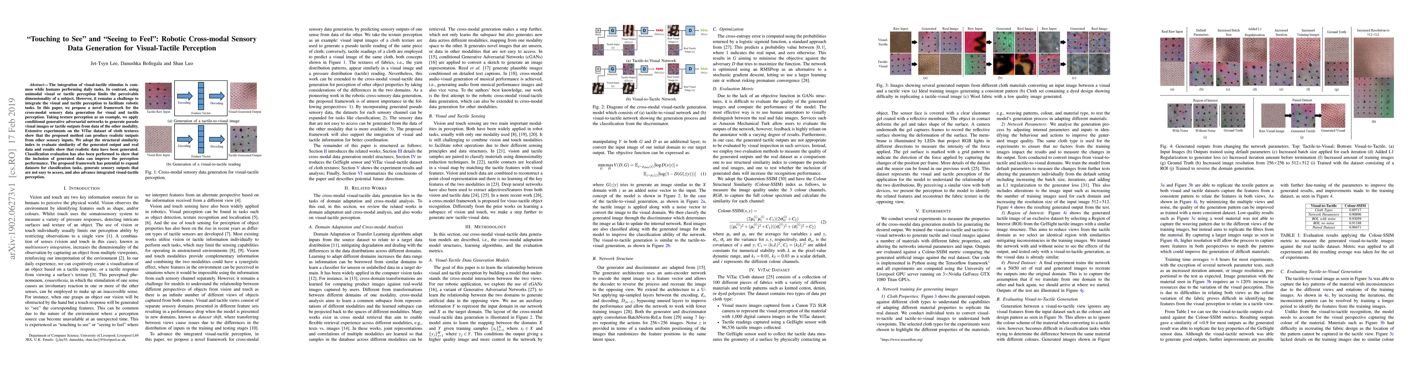 This paper proposes a novel framework using conditional generative adversarial networks to generate cross-modal sensory data for visual-tactile perception, demonstrating its effectiveness through realistic pseudo visual images or tactile outputs from the other modality using the ViTac dataset. The method shows potential to enhance integrated perception and expand classification datasets.
