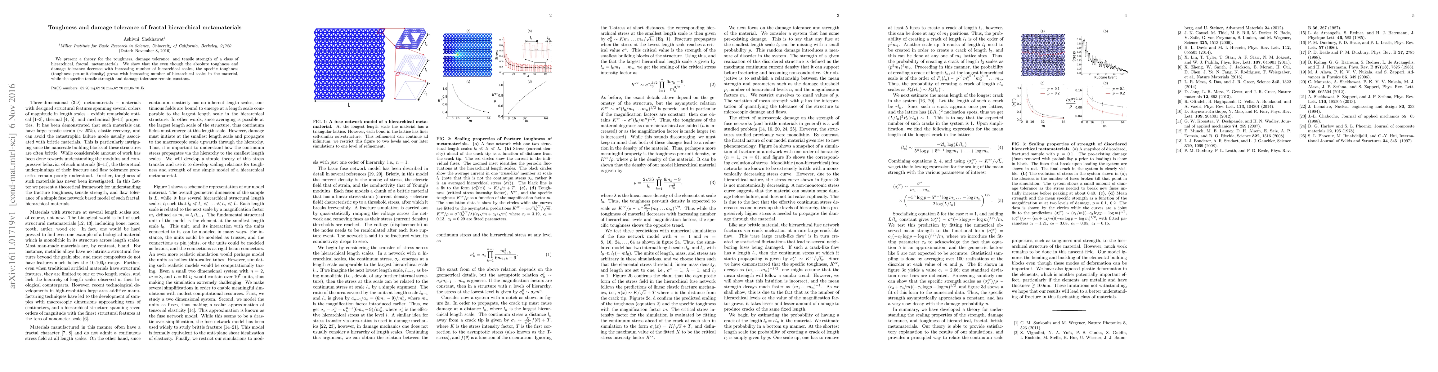We present a theory for the toughness, damage tolerance, and tensile strength of a class of hierarchical, fractal, metamaterials. We show that the even though the absolute toughness and damage tolerance decrease with increasing number of hierarchical scales, the specific toughness (toughness per-unit density) grows with increasing number of hierarchical scales in the material, while the specific tensile strength and damage tolerance remain constant.