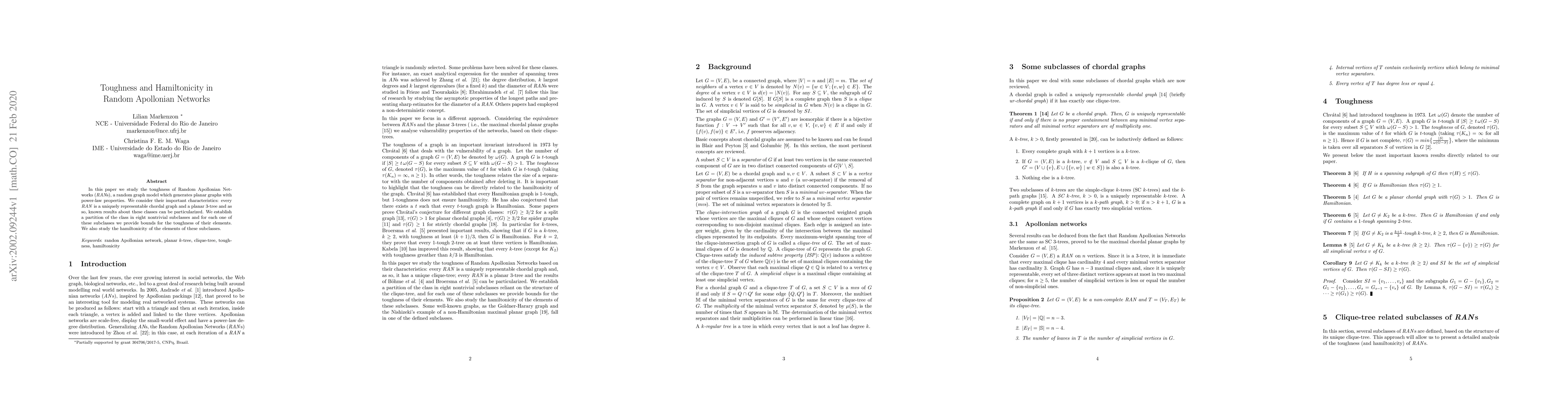 This paper investigates the toughness and Hamiltonicity of Random Apollonian Networks (RANs), a random graph model generating planar graphs with power-law properties. It establishes eight subclasses of RANs, providing toughness bounds for each and examining the Hamiltonicity of these subclasses.