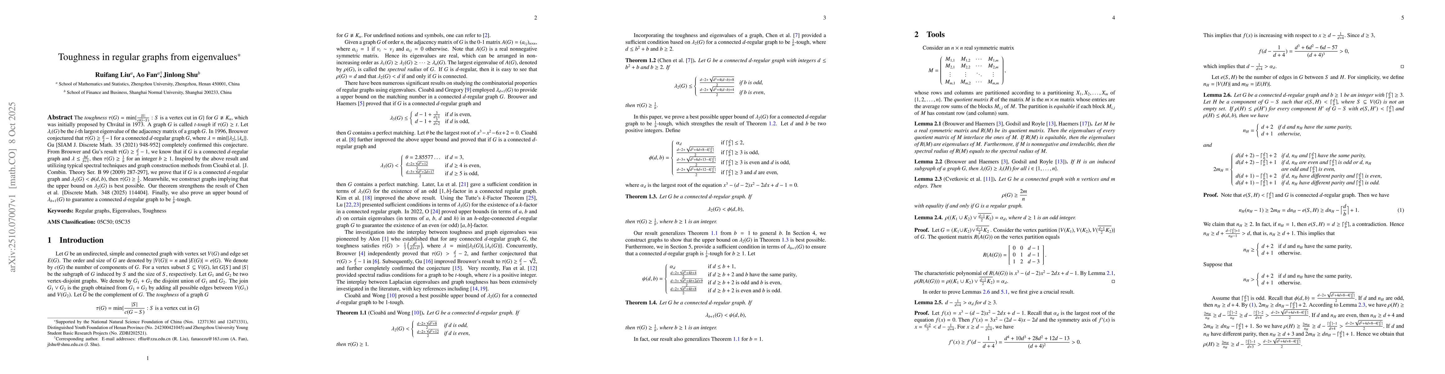 Developed new spectral conditions that precisely characterize toughness thresholds in regular graphs through eigenvalue analysis and matrix partitioning techniques