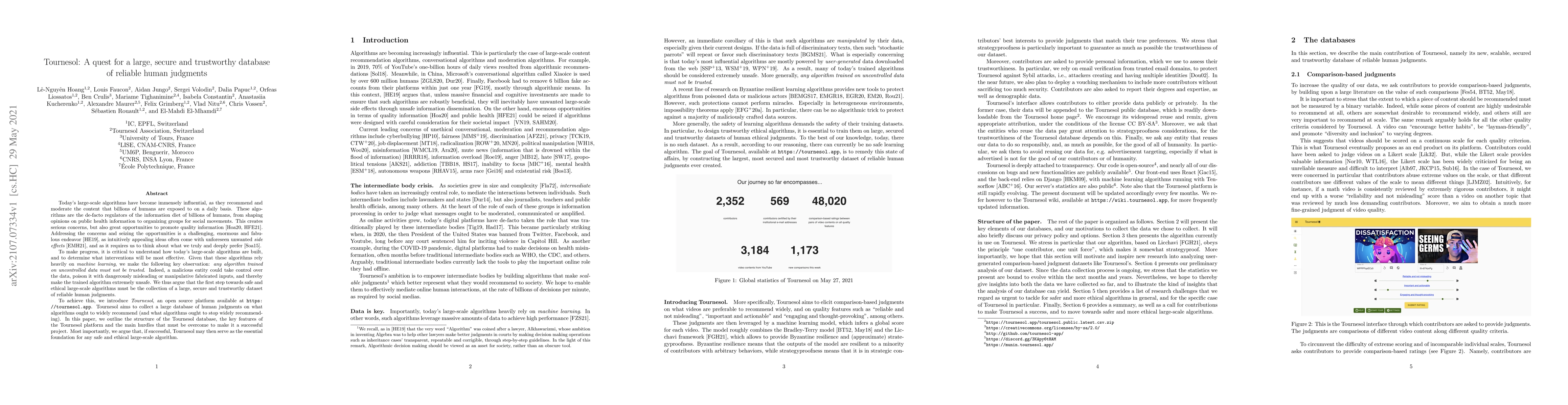 Tournesol aims to create a secure and trustworthy database of reliable human judgments to guide the development of safe and ethical large-scale algorithms. The platform seeks to collect extensive human input on what content should be recommended or moderated, addressing the risks of uncontrolled data in machine learning.