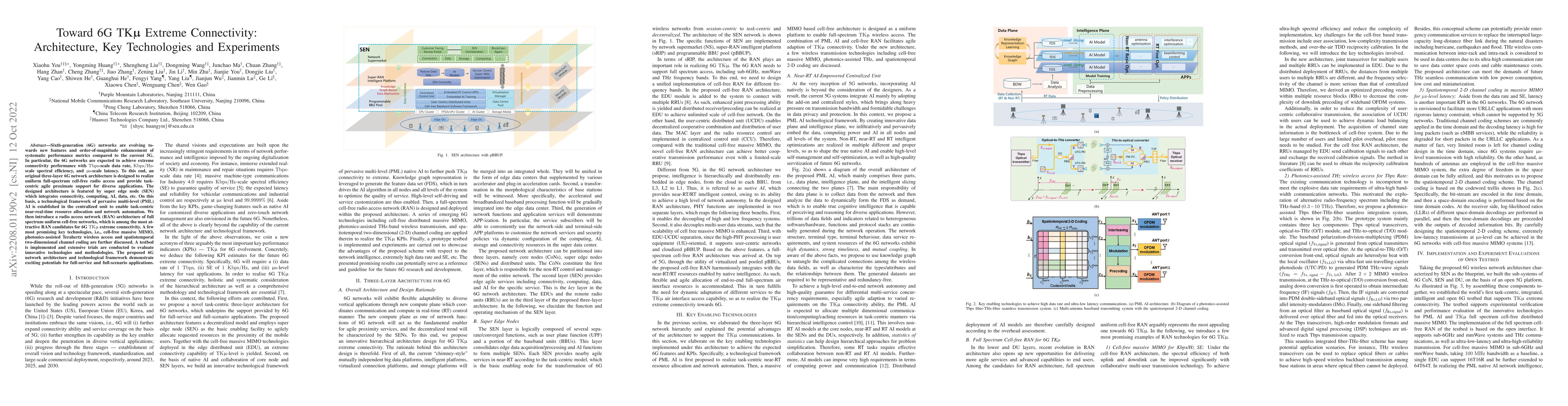 This paper proposes a novel three-layer architecture for 6G networks, aiming for Tbps data rates, Kbps/Hz spectral efficiency, and $\mu$s latency. The architecture features a super edge node integrating various functionalities and a centralized unit with pervasive multi-level AI for resource allocation and network automation. Key technologies like cell-free massive MIMO and photonics-assisted Terahertz wireless access are explored, with experimental validation showing promising results for future connectivity.
