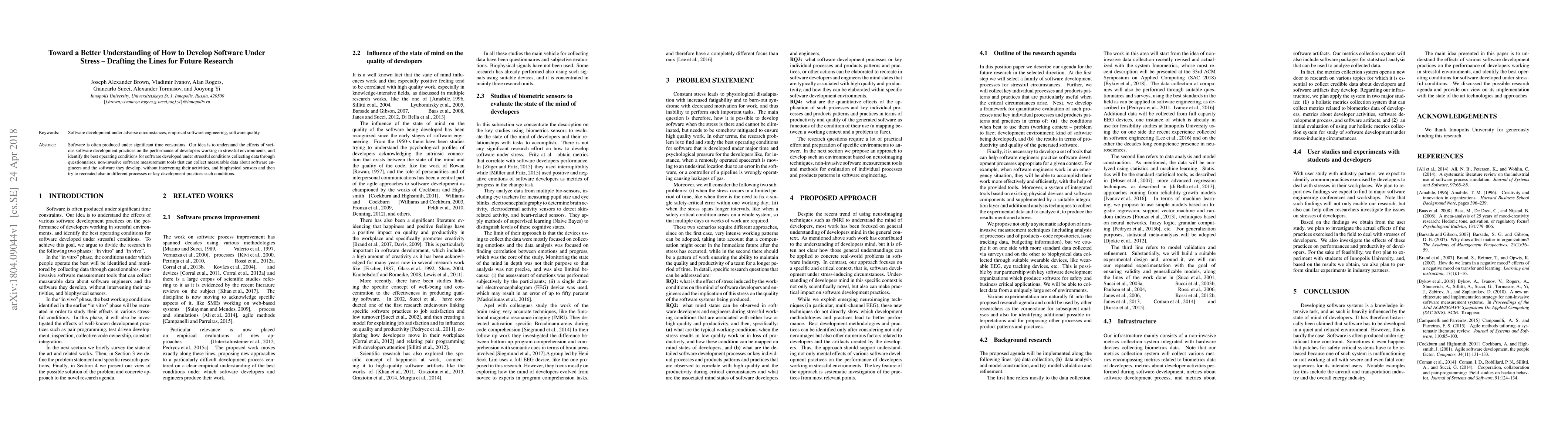 The software is often produced under significant time constraints. Our idea is to understand the effects of various software development practices on the performance of developers working in stressful environments, and identify the best operating conditions for software developed under stressful conditions collecting data through questionnaires, non-invasive software measurement tools that can collect measurable data about software engineers and the software they develop, without intervening their activities, and biophysical sensors and then try to recreated also in different processes or key development practices such conditions.