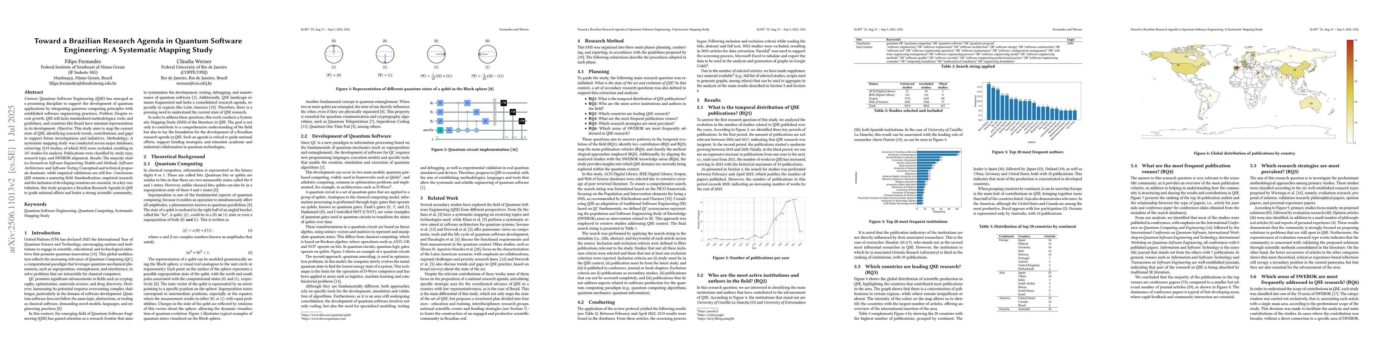 Context: Quantum Software Engineering (QSE) has emerged as a key field to support the development of reliable, maintainable, and scalable quantum applications, bridging advances in quantum computing with established practices in software engineering. Problem: Despite its growth, the field still suffers from fragmented knowledge, with a lack of standardized methodologies, tools, and guidelines tailored to the unique features of the quantum paradigm. Additionally, countries like Brazil have had limited participation in the development of this emerging domain. Objective: This study aims to map the state of the art in QSE by identifying current research trends, recurring contributions, and existing gaps that can guide future investigations and strategic initiatives. Methodology: A systematic mapping study was conducted analyzing selected publications based on inclusion and exclusion criteria. Articles were categorized by study type, research type, and alignment with the SWEBOK knowledge areas. Results: Most of the reviewed studies are primary research articles written in English, with a strong focus on Software Engineering Models and Methods, Software Architecture, and Software Testing. Conceptual proposals and technical solutions predominate, while empirical validations remain limited. Conclusions: Findings confirm that QSE is a promising but still maturing field. The standardization of practices, expansion of empirical studies, and inclusion of researchers from developing countries are crucial for advancing the discipline. Additionally, Brazilian contributions are still scarce, highlighting the urgent need to establish a national research agenda. As a main contribution, this study proposes a Brazilian Research Agenda in QSE, outlining priority areas and opportunities to foster a local scientific community and accelerate progress in this emerging field.