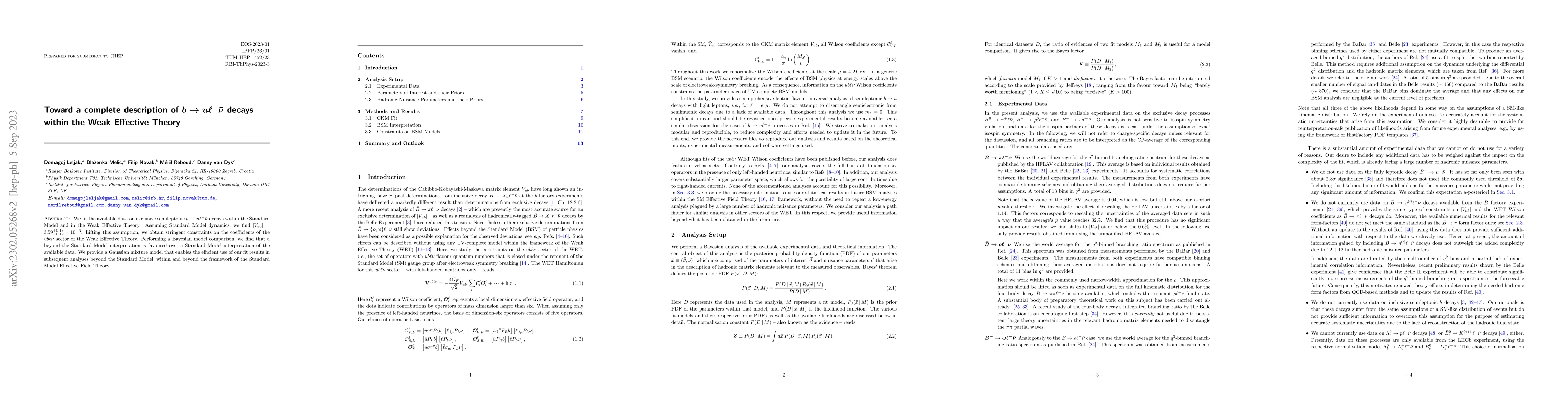 This paper fits data on $b\to u\ell^-\bar\nu$ decays within the Standard Model and the Weak Effective Theory, finding $|V_{ub}| = 3.59^{+0.13}_{-0.12} \times 10^{-3}$. It favors a beyond Standard Model interpretation over the Standard Model, providing a Gaussian mixture model for future analyses.