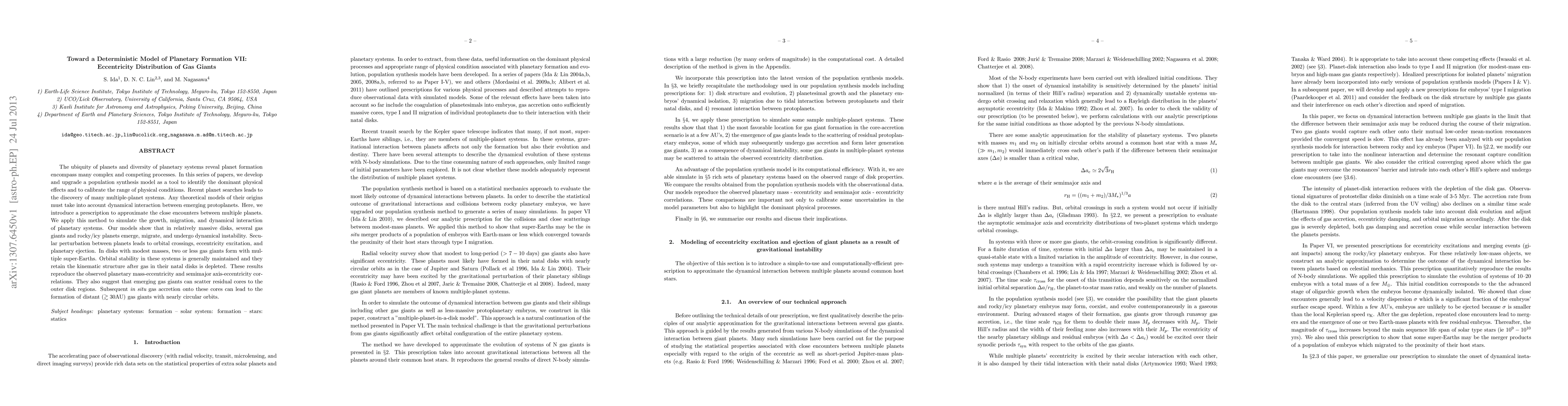 This paper develops a population synthesis model to simulate the formation and migration of gas giants, showing that dynamical interactions lead to eccentricity excitation and ejection, while modest disk masses result in stable systems with fewer gas giants. The model reproduces observed correlations and suggests the formation of distant gas giants through residual core scattering and gas accretion.