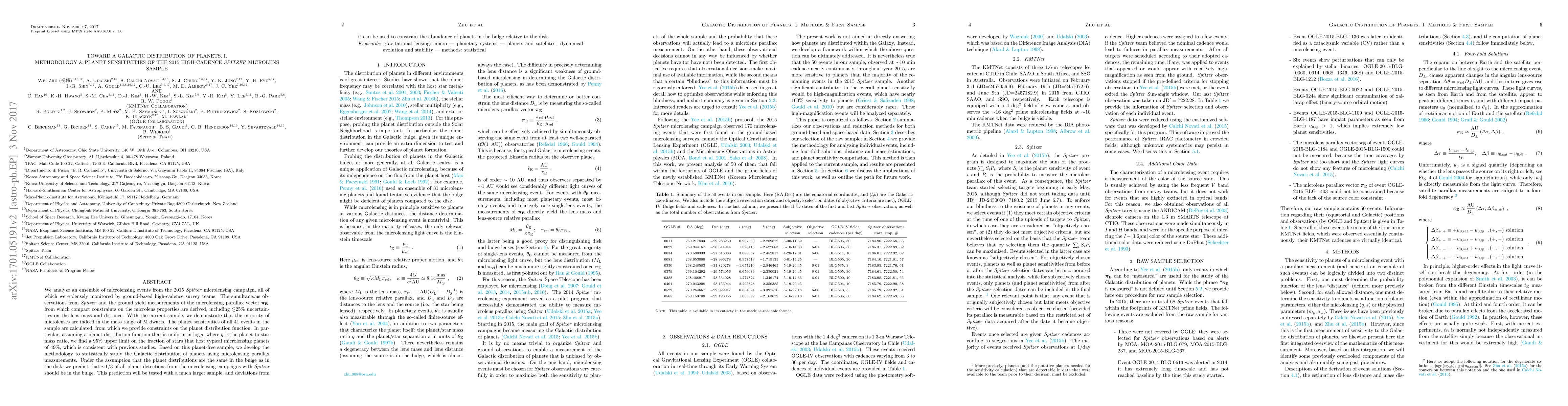 We analyze an ensemble of microlensing events from the 2015 Spitzer microlensing campaign, all of which were densely monitored by ground-based high-cadence survey teams. The simultaneous observations from Spitzer and the ground yield measurements of the microlensing parallax vector $\pi_{\rm E}$, from which compact constraints on the microlens properties are derived, including $\lesssim$25\% uncertainties on the lens mass and distance. With the current sample, we demonstrate that the majority of microlenses are indeed in the mass range of M dwarfs. The planet sensitivities of all 41 events in the sample are calculated, from which we provide constraints on the planet distribution function. In particular, assuming a planet distribution function that is uniform in $\log{q}$, where $q$ is the planet-to-star mass ratio, we find a $95\%$ upper limit on the fraction of stars that host typical microlensing planets of 49\%, which is consistent with previous studies. Based on this planet-free sample, we develop the methodology to statistically study the Galactic distribution of planets using microlensing parallax measurements. Under the assumption that the planet distributions are the same in the bulge as in the disk, we predict that $\sim$1/3 of all planet detections from the microlensing campaigns with Spitzer should be in the bulge. This prediction will be tested with a much larger sample, and deviations from it can be used to constrain the abundance of planets in the bulge relative to the disk.