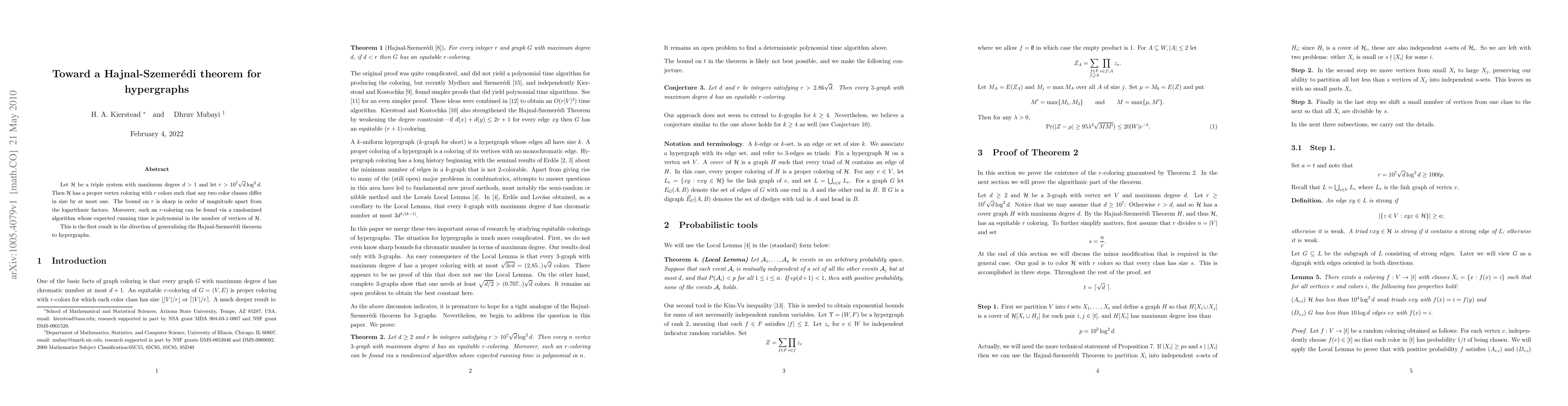A new theorem for hypergraphs is proposed, showing that a maximum degree $d$ can be color-coded with $r>10^7 ext{·} extsuperscript{1/2}d ext{©}log^{2}d$ colors, where $r$ is sharp in order of magnitude apart from the logarithmic factors.