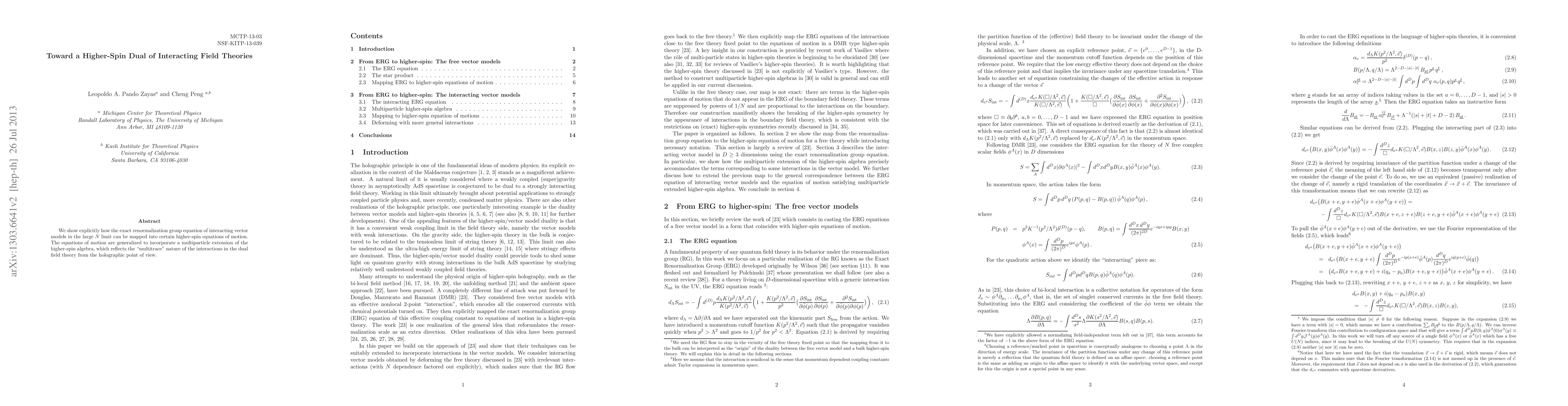 This paper demonstrates a mapping between the exact renormalization group equation of large N interacting vector models and higher-spin equations of motion, incorporating a multiparticle extension of the higher-spin algebra to reflect the multitrace interactions in the dual field theory from a holographic perspective.