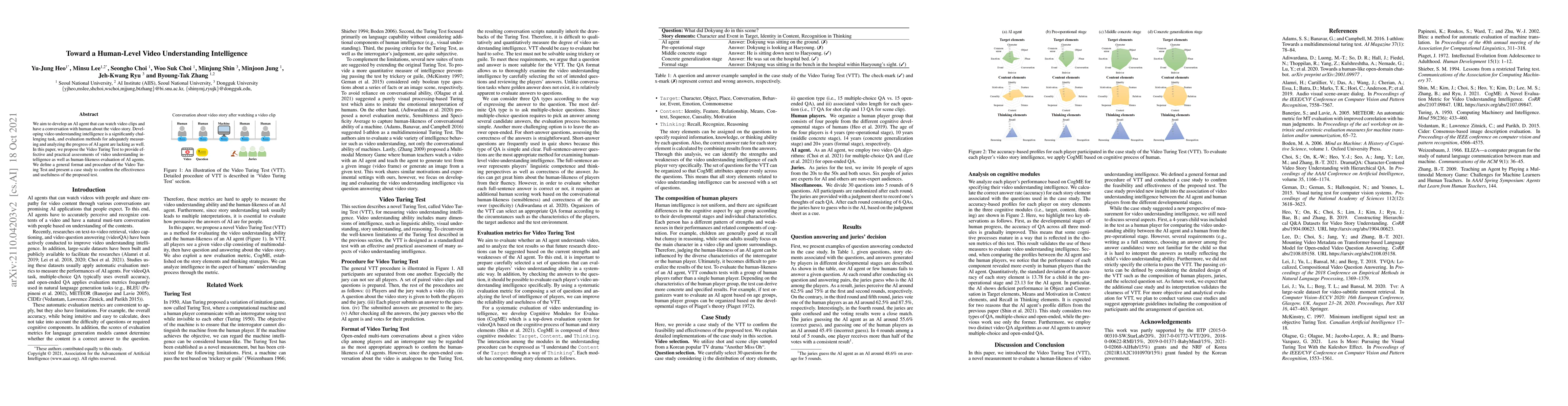 This paper proposes a Video Turing Test to assess AI agents' video understanding intelligence and their ability to converse about video stories. The authors introduce a practical evaluation method to measure progress in this challenging field and demonstrate its effectiveness through a case study.