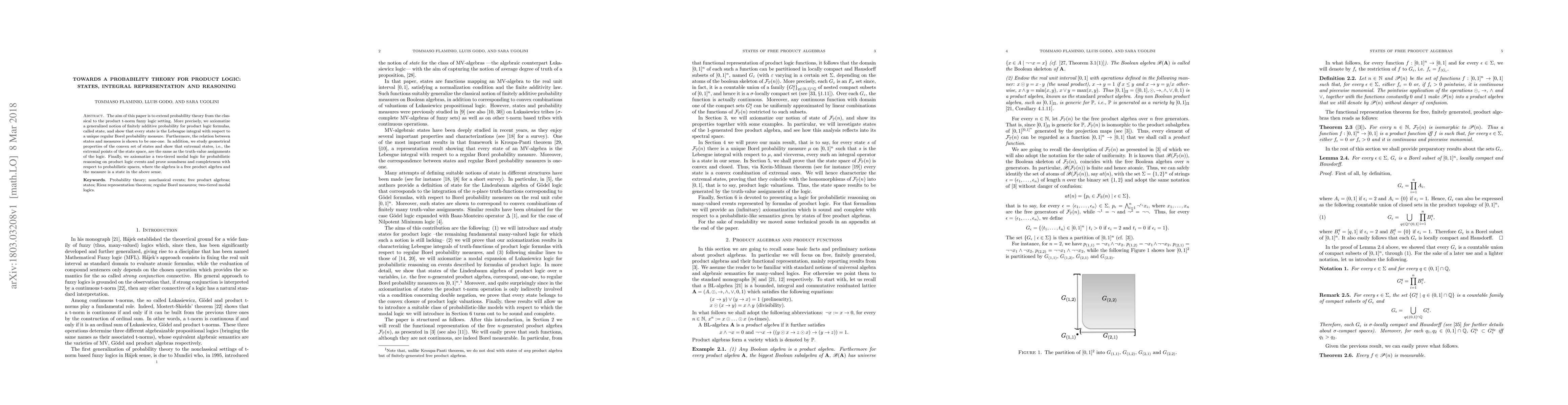 The aim of this paper is to extend probability theory from the classical to the product t-norm fuzzy logic setting. More precisely, we axiomatize a generalized notion of finitely additive probability for product logic formulas, called state, and show that every state is the Lebesgue integral with respect to a unique regular Borel probability measure. Furthermore, the relation between states and measures is shown to be one-one. In addition, we study geometrical properties of the convex set of states and show that extremal states, i.e., the extremal points of the state space, are the same as the truth-value assignments of the logic. Finally, we axiomatize a two-tiered modal logic for probabilistic reasoning on product logic events and prove soundness and completeness with respect to probabilistic spaces, where the algebra is a free product algebra and the measure is a state in the above sense.