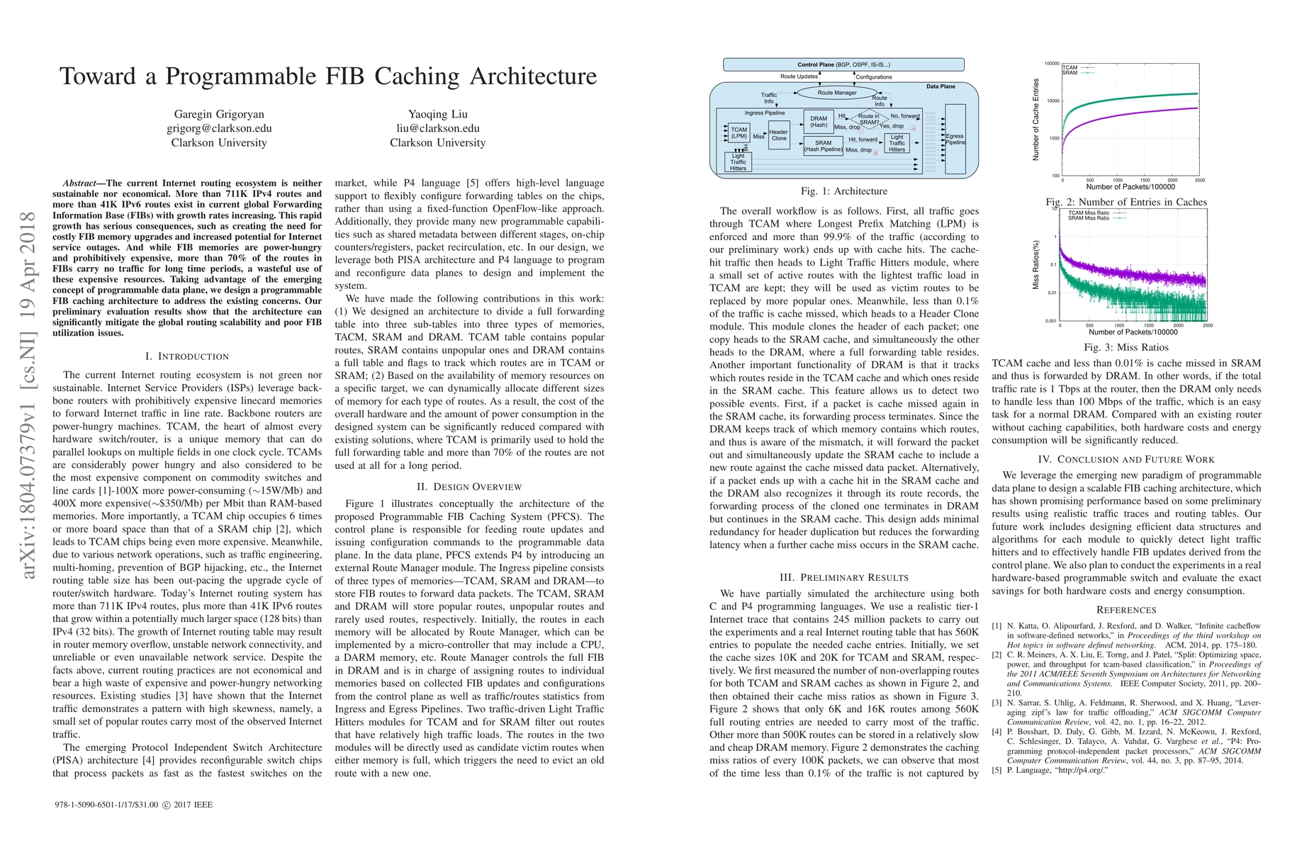 The current Internet routing ecosystem is neither sustainable nor economical. More than 711K IPv4 routes and more than 41K IPv6 routes exist in current global Forwarding Information Base (FIBs) with growth rates increasing. This rapid growth has serious consequences, such as creating the need for costly FIB memory upgrades and increased potential for Internet service outages. And while FIB memories are power-hungry and prohibitively expensive, more than 70\% of the routes in FIBs carry no traffic for long time periods, a wasteful use of these expensive resources. Taking advantage of the emerging concept of programmable data plane, we design a programmable FIB caching architecture to address the existing concerns. Our preliminary evaluation results show that the architecture can significantly mitigate the global routing scalability and poor FIB utilization issues.