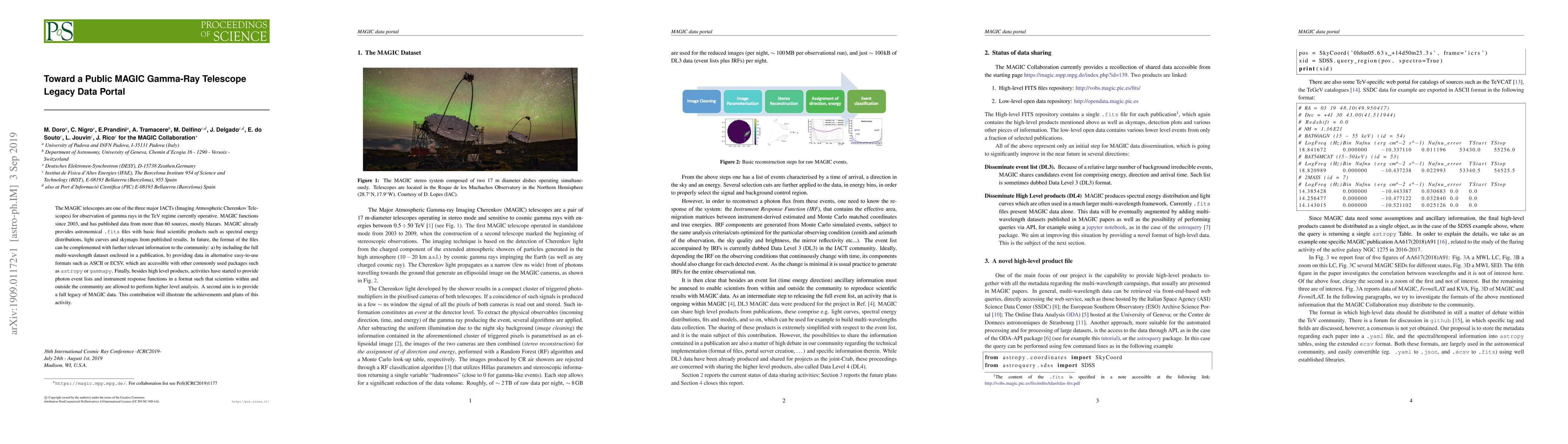 The MAGIC telescopes aim to create a comprehensive legacy data portal for their gamma-ray observations, offering enhanced data formats and full multi-wavelength datasets to facilitate advanced scientific analysis. Plans include providing photon event lists and instrument response functions to support both community and external researchers.