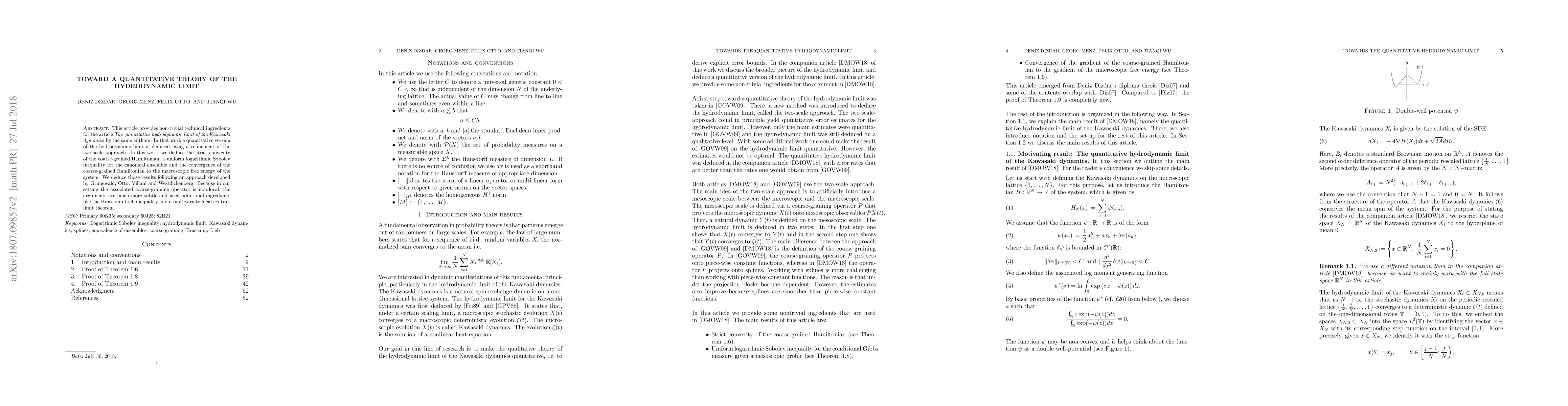 This article provides non-trivial technical ingredients for the article "The quantitative hydrodynamic limit of the Kawasaki dynamics" by the same authors. In that work a quantitative version of the hydrodynamic limit is deduced using a refinement of the two-scale approach. In this work, we deduce the strict convexity of the coarse-grained Hamiltonian, a uniform logarithmic Sobolev inequality for the canonical ensemble and the convergence of the coarse-grained Hamiltonian to the macroscopic free energy of the system. We deduce those results following an approach developed by Grunewald, Otto, Villani and Westdickenberg. Because in our setting the associated coarse-graining operator is non-local, the arguments are much more subtle and need additional ingredients like the Brascamp-Lieb inequality and a multivariate local central-limit theorem.
