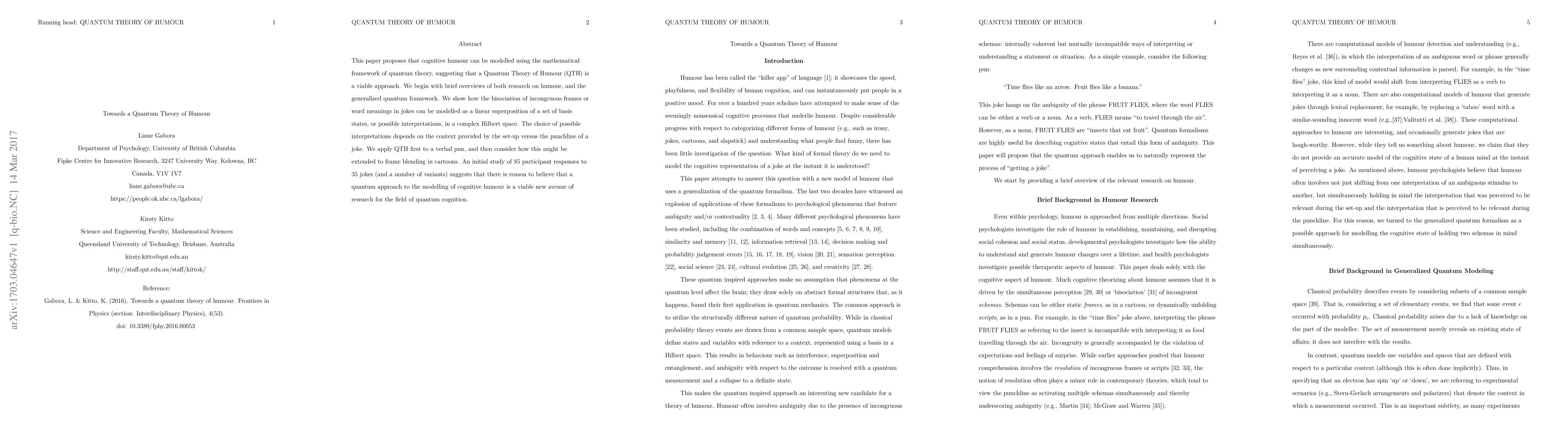 This paper proposes a Quantum Theory of Humor (QTH) that models cognitive humor using quantum theory's mathematical framework, demonstrating how joke interpretations can be seen as superpositions in a complex Hilbert space. Initial empirical study involving participant responses suggests QTH offers a promising new approach to humor modeling.