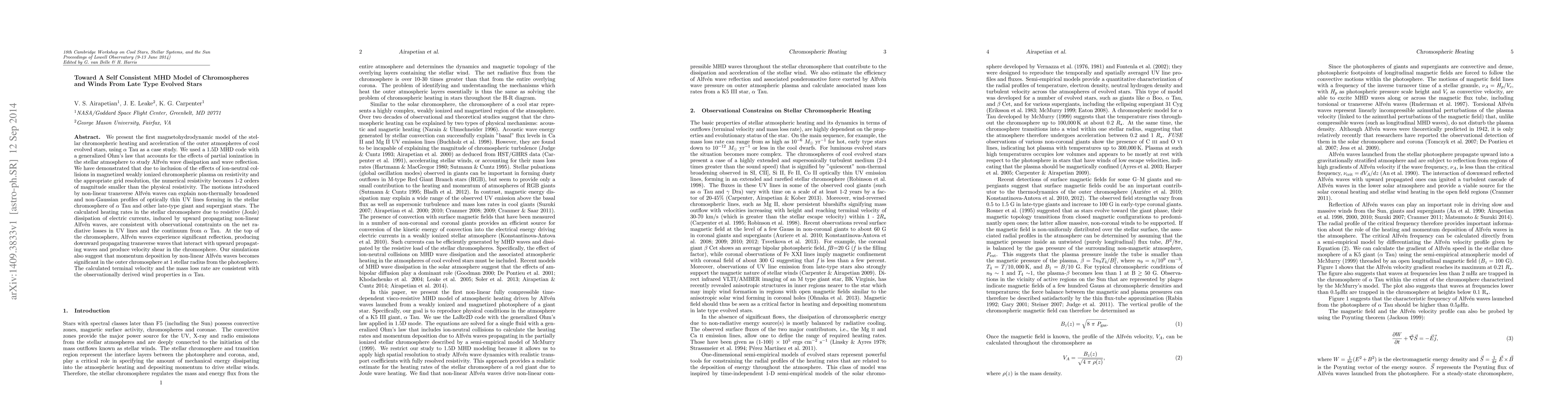 We present the first magnetohydrodynamic model of the stellar chromospheric heating and acceleration of the outer atmospheres of cool evolved stars, using alpha Tau as a case study. We used a 1.5D MHD code with a generalized Ohm's law that accounts for the effects of partial ionization in the stellar atmosphere to study Alfven wave dissipation and wave reflection. We have demonstrated that due to inclusion of the effects of ion-neutral collisions in magnetized weakly ionized chromospheric plasma on resistivity and the appropriate grid resolution, the numerical resistivity becomes 1-2 orders of magnitude smaller than the physical resistivity. The motions introduced by non-linear transverse Alfven waves can explain non-thermally broadened and non-Gaussian profiles of optically thin UV lines forming in the stellar chromosphere of alpha Tau and other late-type giant and supergiant stars. The calculated heating rates in the stellar chromosphere due to resistive (Joule) dissipation of electric currents, induced by upward propagating non-linear Alfven waves, are consistent with observational constraints on the net radiative losses in UV lines and the continuum from alpha Tau. At the top of the chromosphere, Alfven waves experience significant reflection, producing downward propagating transverse waves that interact with upward propagating waves and produce velocity shear in the chromosphere. Our simulations also suggest that momentum deposition by non-linear Alfven waves becomes significant in the outer chromosphere at 1 stellar radius from the photosphere. The calculated terminal velocity and the mass loss rate are consistent with the observationally derived wind properties in alpha Tau.