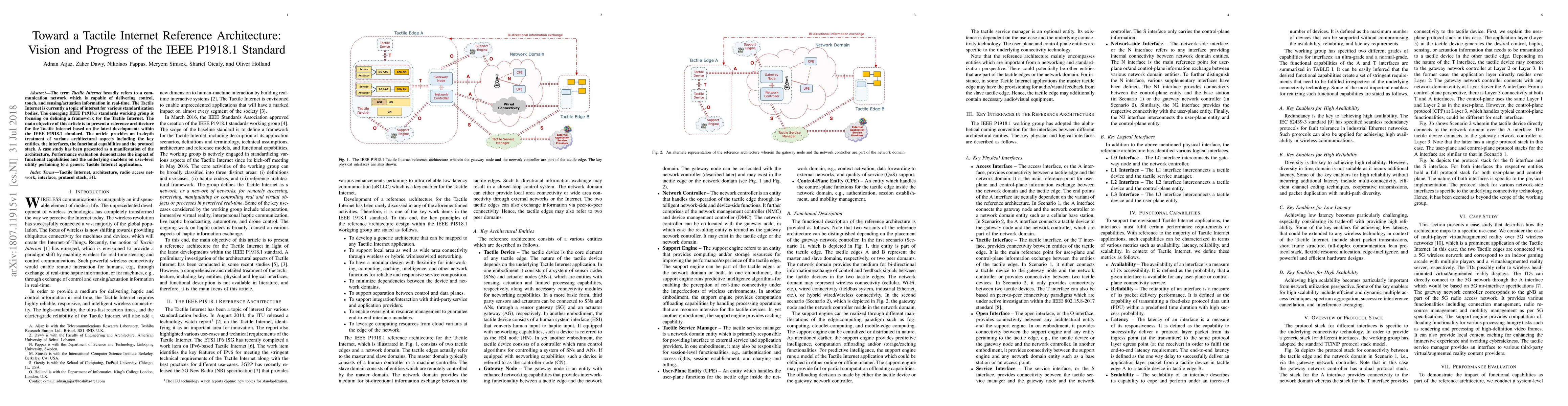 This paper presents a reference architecture for the Tactile Internet based on the IEEE P1918.1 standard, detailing key entities, interfaces, and functional capabilities. It includes a case study and performance evaluation to demonstrate the architecture's impact on user-level utility in real-time control and sensing applications.