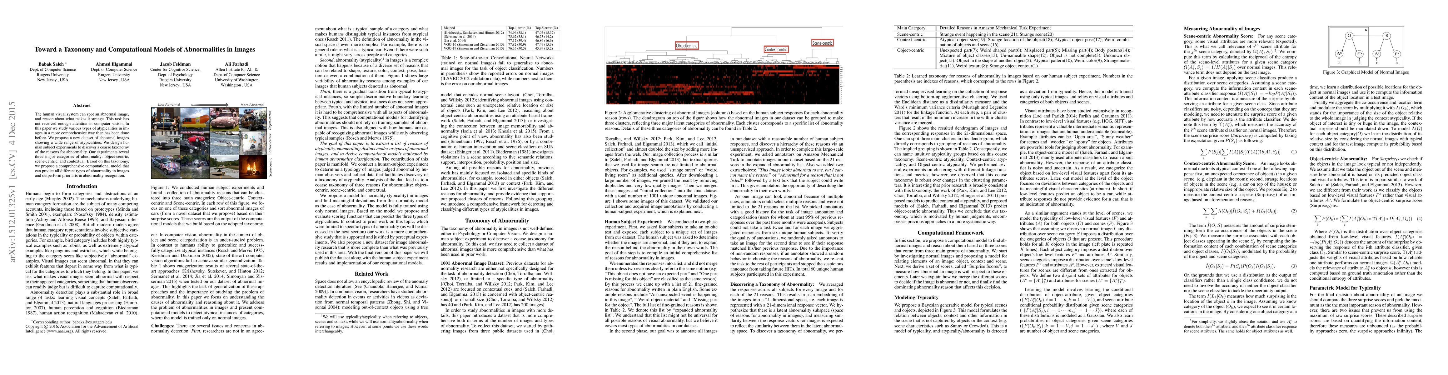 The human visual system can spot an abnormal image, and reason about what makes it strange. This task has not received enough attention in computer vision. In this paper we study various types of atypicalities in images in a more comprehensive way than has been done before. We propose a new dataset of abnormal images showing a wide range of atypicalities. We design human subject experiments to discover a coarse taxonomy of the reasons for abnormality. Our experiments reveal three major categories of abnormality: object-centric, scene-centric, and contextual. Based on this taxonomy, we propose a comprehensive computational model that can predict all different types of abnormality in images and outperform prior arts in abnormality recognition.