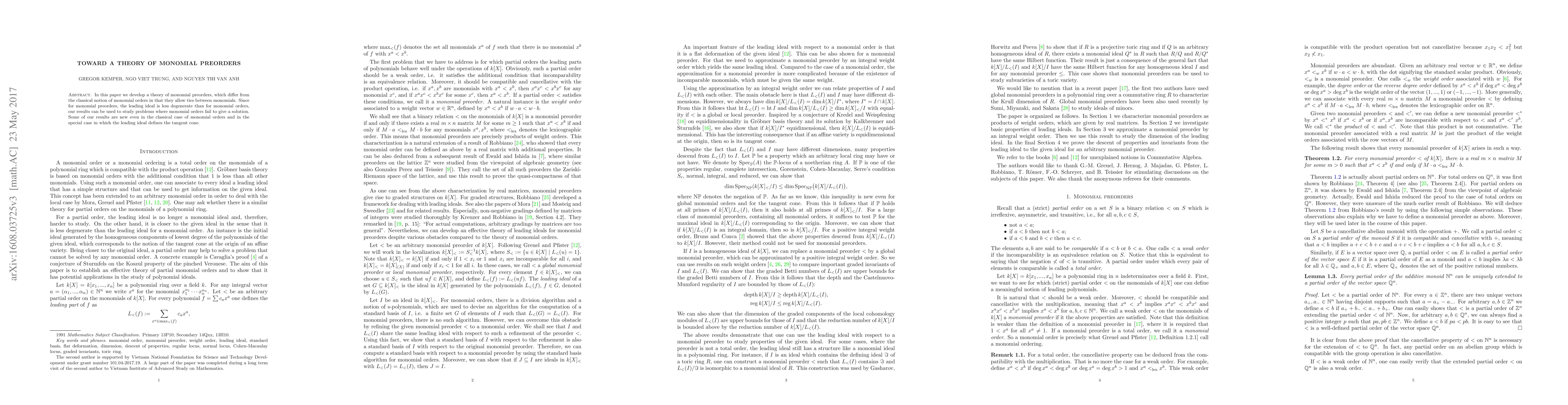This paper introduces a new theory of monomial preorders, allowing ties between monomials, which can address problems where traditional monomial orders fall short. It presents novel results even in the classical context of monomial orders and when the leading ideal defines the tangent cone.