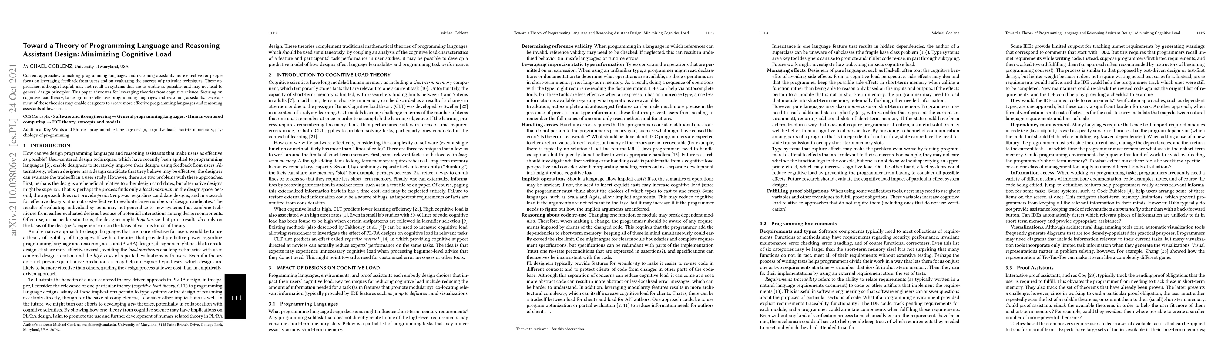 This paper proposes leveraging cognitive load theory from cognitive science to design more effective programming languages and reasoning assistants, aiming to minimize cognitive load and develop general design principles for better usability.