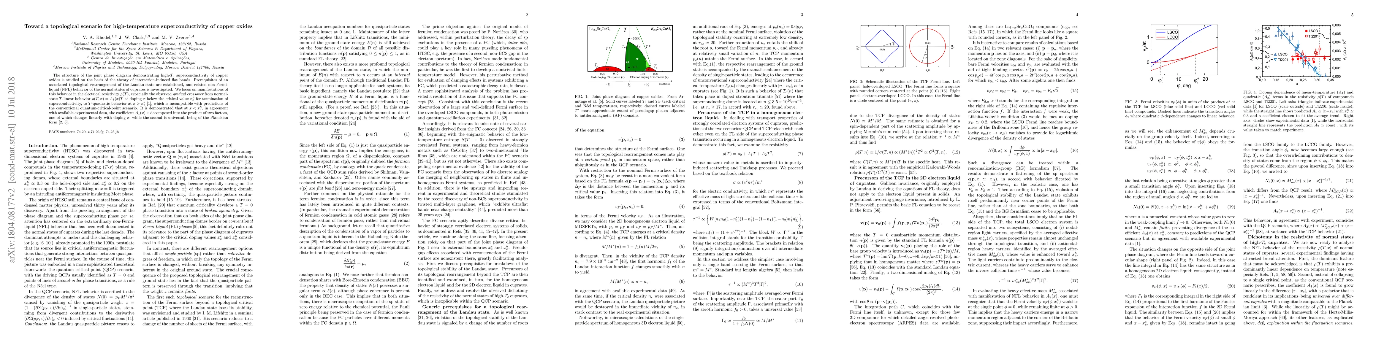This paper explores the topological underpinnings of high-temperature superconductivity in copper oxides, proposing a scenario based on interaction-induced flat bands and a topological rearrangement of Landau states. It investigates the non-Fermi-liquid behavior in cuprates, particularly the unusual resistivity crossover from $T$-linear to $T$-quadratic with doping, challenging conventional quantum-critical-point predictions.