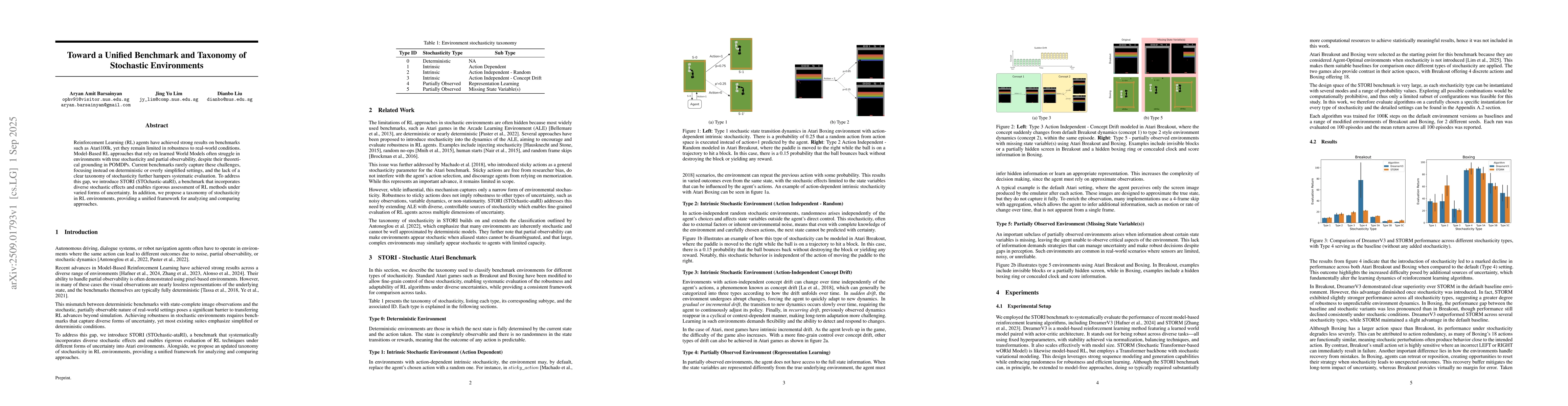 Reinforcement Learning (RL) agents have achieved strong results on benchmarks such as Atari100k, yet they remain limited in robustness to real-world conditions. Model-Based RL approaches that rely on learned World Models often struggle in environments with true stochasticity and partial observability, despite their theoretical grounding in POMDPs. Current benchmarks rarely capture these challenges, focusing instead on deterministic or overly simplified settings, and the lack of a clear taxonomy of stochasticity further hampers systematic evaluation. To address this gap, we introduce STORI (STOchastic-ataRI), a benchmark that incorporates diverse stochastic effects and enables rigorous assessment of RL methods under varied forms of uncertainty. In addition, we propose a taxonomy of stochasticity in RL environments, providing a unified framework for analyzing and comparing approaches.