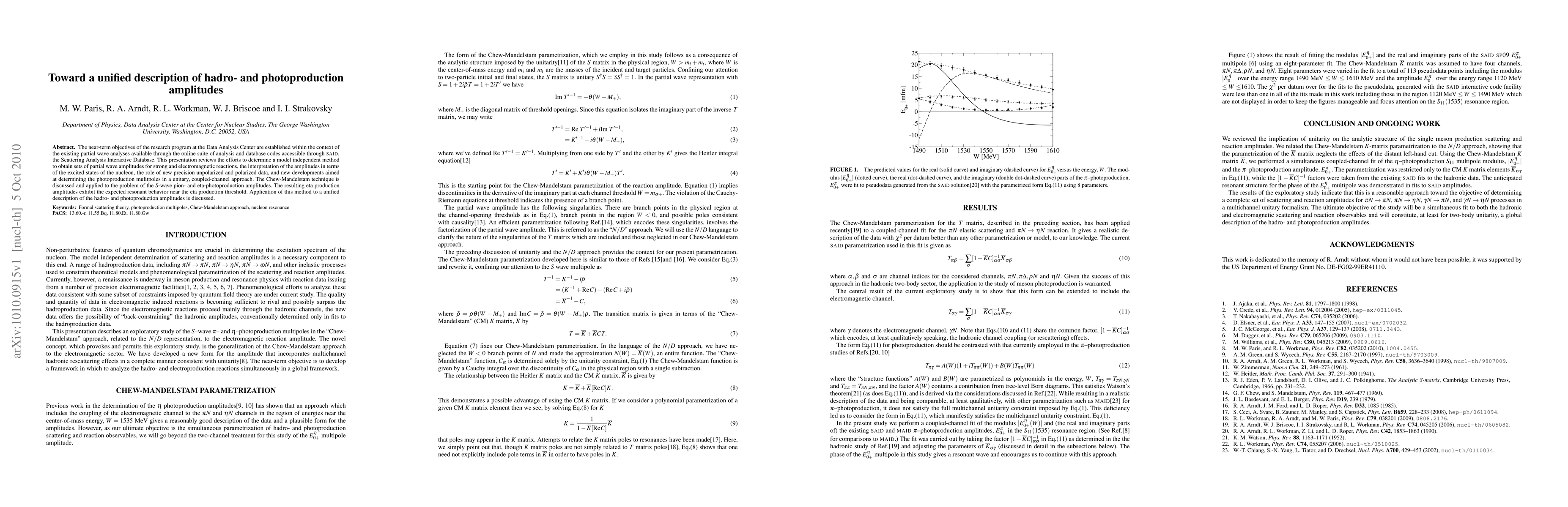 The near-term objectives of the research program at the Data Analysis Center are established within the context of the existing partial wave analyses available through the online suite of analysis and database codes accessible through SAID, the Scattering Analysis Interactive Database. This presentation reviews the efforts to determine a model independent method to obtain sets of partial wave amplitudes for strong and electromagnetic reactions, the interpretation of the amplitudes in terms of the excited states of the nucleon, the role of new precision unpolarized and polarized data, and new developments aimed at determining the photoproduction mulitpoles in a unitary, coupled-channel approach. The Chew-Mandelstam technique is discussed and applied to the problem of the S-wave pion- and eta-photoproduction amplitudes. The resulting eta production amplitudes exhibit the expected resonant behavior near the eta production threshold. Application of this method to a unified description of the hadro- and photoproduction amplitudes is discussed.