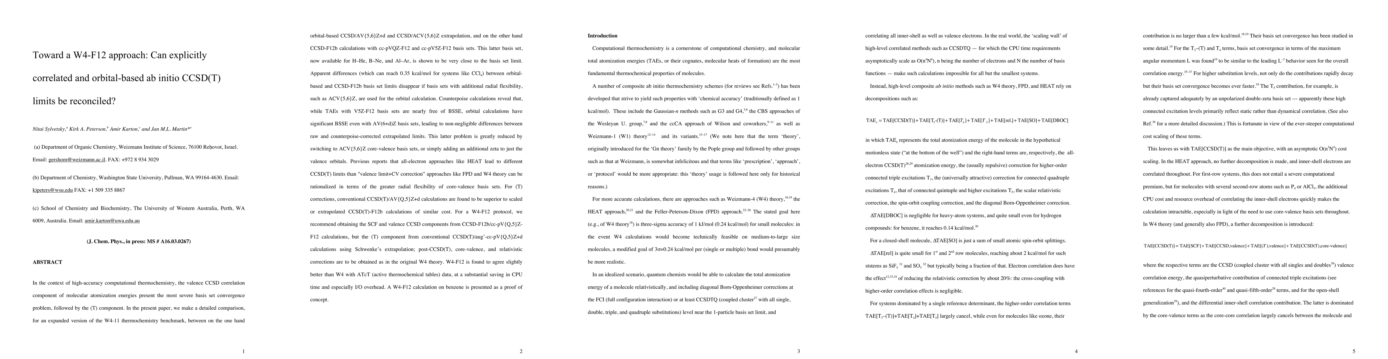 This paper explores the reconciliation of explicitly correlated CCSD-F12b calculations with orbital-based CCSD limits in computational thermochemistry, finding that differences between these methods diminish with more flexible basis sets. The W4-F12 approach shows better agreement with experimental data compared to traditional W4 theory, while significantly reducing computational costs.