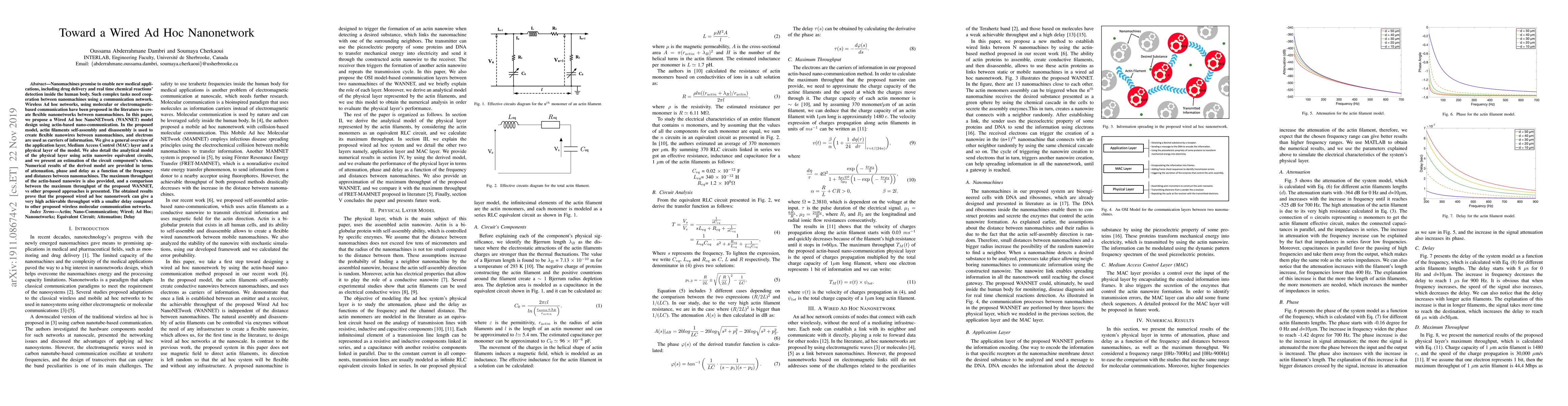 Nanomachines promise to enable new medical applications, including drug delivery and real time chemical reactions' detection inside the human body. Such complex tasks need cooperation between nanomachines using a communication network. Wireless Ad hoc networks, using molecular or electromagnetic-based communication have been proposed in the literature to create flexible nanonetworks between nanomachines. In this paper, we propose a Wired Ad hoc NanoNETwork (WANNET) model design using actin-based nano-communication. In the proposed model, actin filaments self-assembly and disassembly is used to create flexible nanowires between nanomachines, and electrons are used as carriers of information. We give a general overview of the application layer, Medium Access Control (MAC) layer and a physical layer of the model. We also detail the analytical model of the physical layer using actin nanowire equivalent circuits, and we present an estimation of the circuit component's values. Numerical results of the derived model are provided in terms of attenuation, phase and delay as a function of the frequency and distances between nanomachines. The maximum throughput of the actin-based nanowire is also provided, and a comparison between the maximum throughput of the proposed WANNET, vs other proposed approaches is presented. The obtained results prove that the proposed wired ad hoc nanonetwork can give a very high achievable throughput with a smaller delay compared to other proposed wireless molecular communication networks.