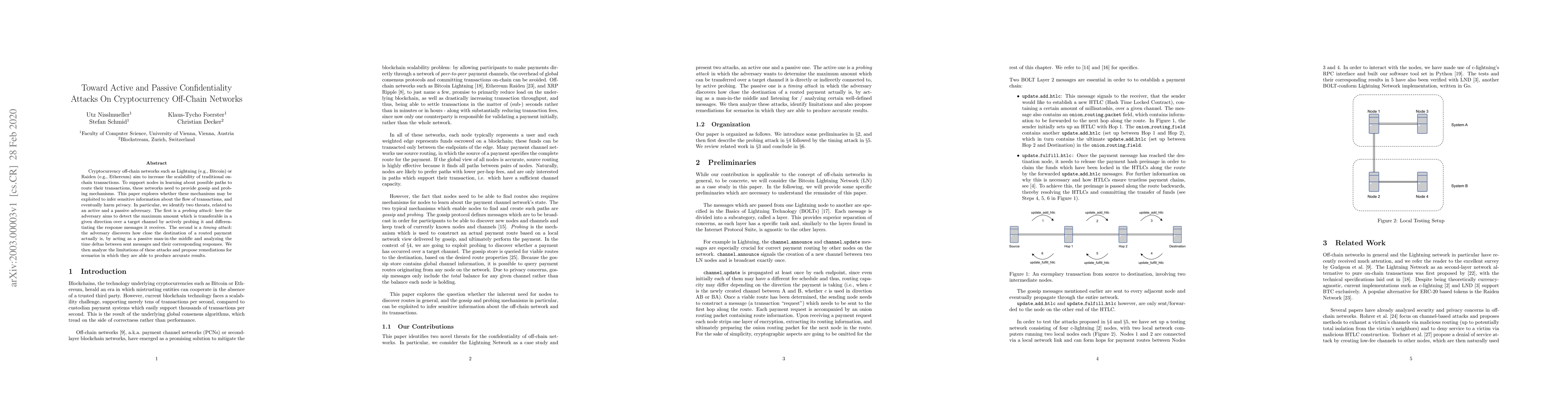 Researchers explore how cryptocurrency off-chain networks can be vulnerable to active and passive attacks that compromise user privacy, proposing mitigations for these threats.