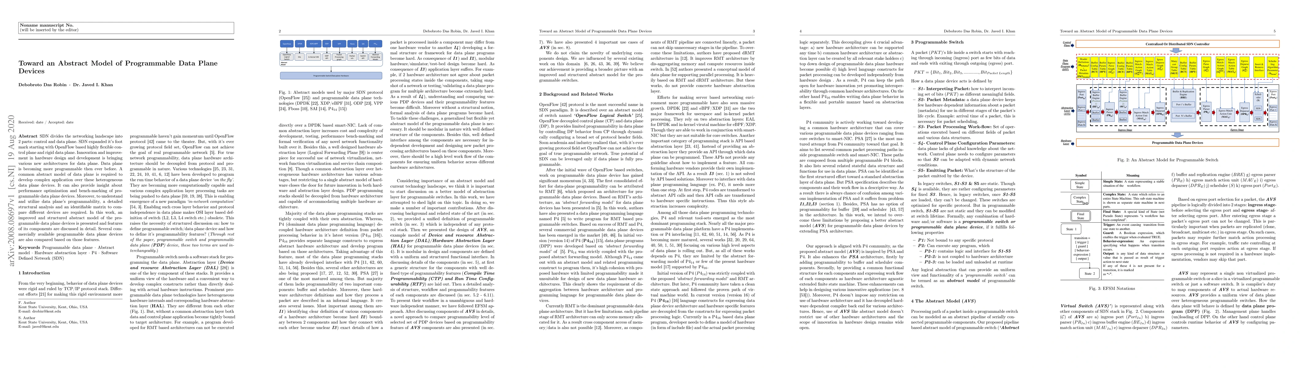 SDN divides the networking landscape into 2 parts: control and data plane. SDN expanded it's foot mark starting with OpenFlow based highly flexible control plane and rigid data plane. Innovation and improvement in hardware design and development is bringing various new architectures for data plane. Data plane is becoming more programmable then ever before. A common abstract model of data plane is required to develop complex application over these heterogeneous data plane devices. It can also provide insight about performance optimization and bench-marking of programmable data plane devices. Moreover, to understand and utilize data plane's programmability, a detailed structural analysis and an identifiable matrix to compare different devices are required. In this work, an improved and structured abstract model of the programmable data plane devices is presented and features of its components are discussed in detail. Several commercially available programmable data plane devices are also compared based on those features.