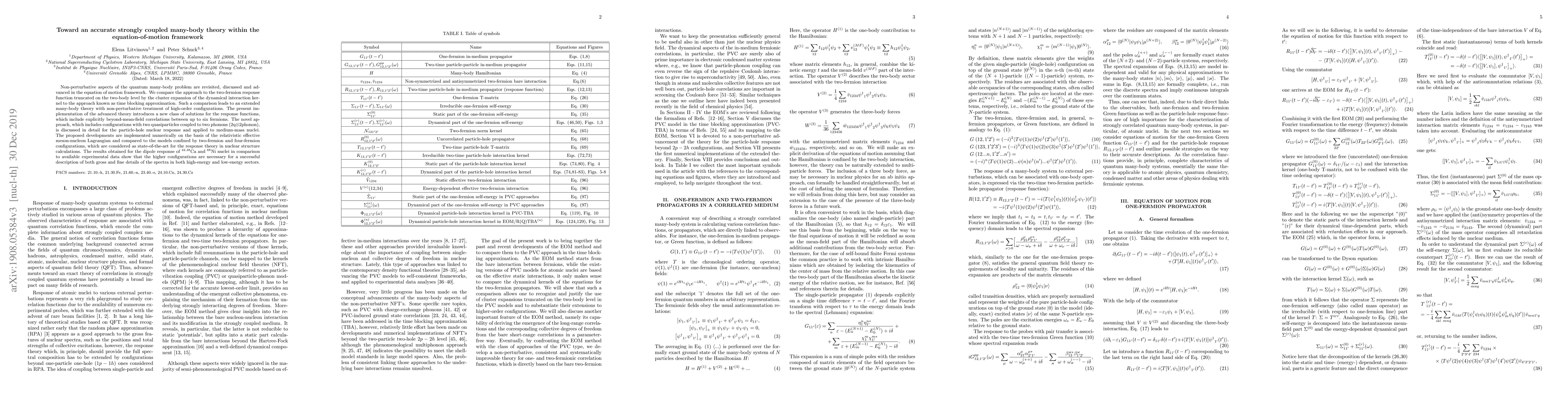 Non-perturbative aspects of the quantum many-body problem are revisited, discussed and advanced in the equation of motion framework. We compare the approach to the two-fermion response function truncated on the two-body level by the cluster expansion of the dynamical interaction kernel to the approach known as time blocking approximation. Such a comparison leads to an extended many-body theory with non-perturbative treatment of high-order configurations. The present implementation of the advanced theory introduces a new class of solutions for the response functions, which include explicitly beyond-mean-field correlations between up to six fermions. The novel approach, which includes configurations with two quasiparticles coupled to two phonons (2q$\otimes$2phonon), is discussed in detail for the particle-hole nuclear response and applied to medium-mass nuclei. The proposed developments are implemented numerically on the basis of the relativistic effective meson-nucleon Lagrangian and compared to the models confined by two-fermion and four-fermion configurations, which are considered as state-of-the-art for the response theory in nuclear structure calculations. The results obtained for the dipole response of $^{42,48}$Ca and $^{68}$Ni nuclei in comparison to available experimental data show that the higher configurations are necessary for a successful description of both gross and fine details of the spectra in both high-energy and low-energy sectors.