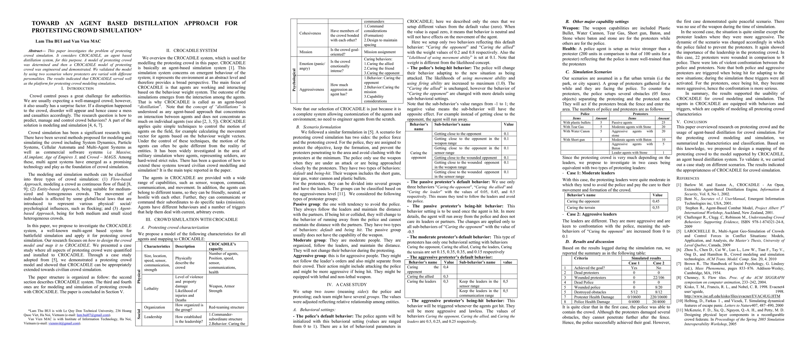 This paper explores the use of CROCADILE, an agent-based distillation approach, to simulate protesting crowds. The study developed and validated a CROCADILE model for this purpose, demonstrating its effectiveness through scenarios with protesters of varied personalities.