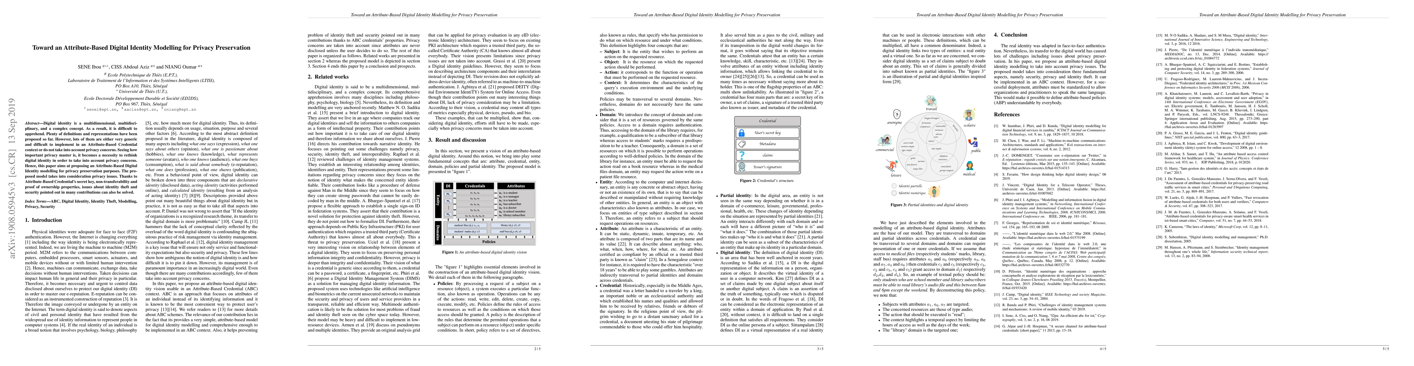 Digital identity is a multidimensional, multidisciplinary, and a complex concept. As a result, it is difficult to apprehend. Many contributions have proposed definitions and representations of digital identity. However, lots of them are either very generic and difficult to implement or do not take into account privacy issues. Seeing how important privacy master is, it becomes a necessity to rethink digital identity in order to take into account privacy issues. So, this paper aims at proposing an attribute-based digital identity vision for privacy preservation purposes. The proposed model takes into account identity theft, security, and privacy.