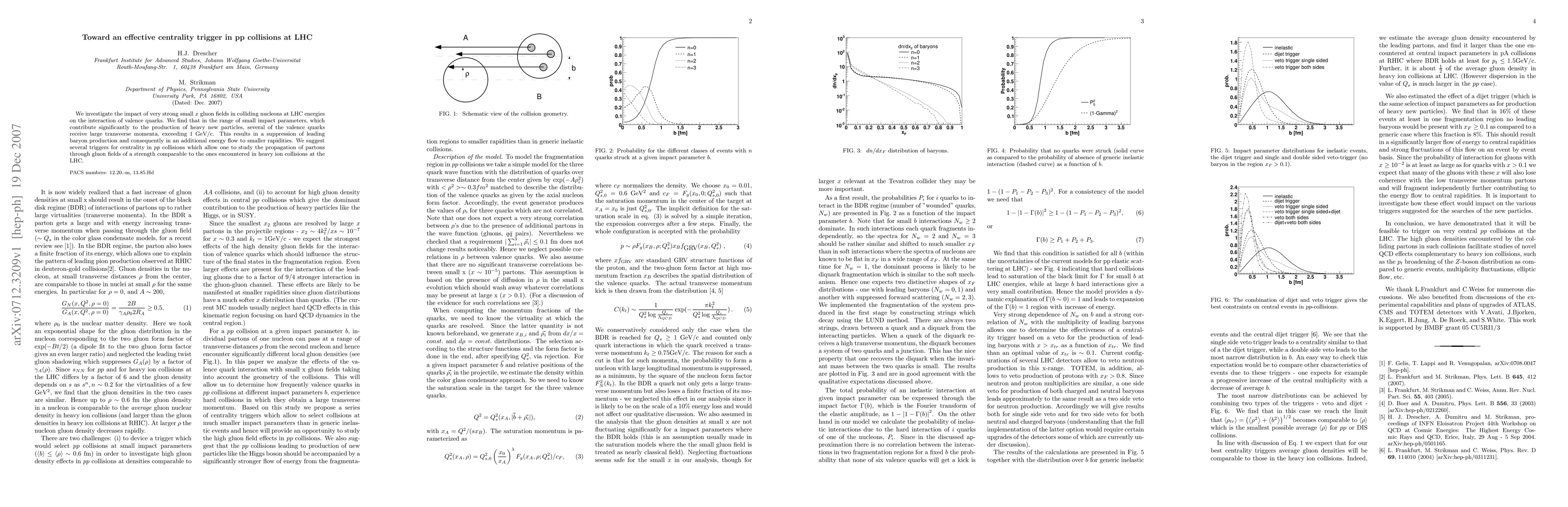 We investigate the impact of very strong small x gluon fields in colliding nucleons at LHC energies on the interaction of valence quarks. We find that in the range of small impact parameters, which contribute significantly to the production of heavy new particles, several of the valence quarks receive large transverse momenta, exceeding 1 GeV/c. This results in a suppression of leading baryon production and consequently in an additional energy flow to smaller rapidities. We suggest several triggers for centrality in pp collisions which allow one to study the propagation of partons through gluon fields of a strength comparable to the ones encountered in heavy ion collisions at the LHC.