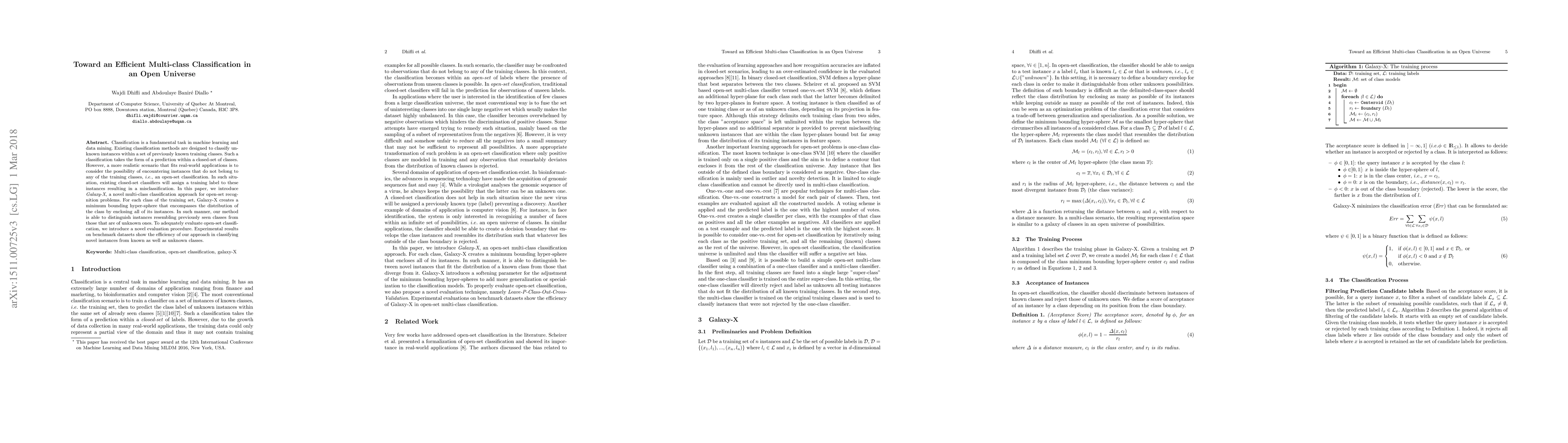 This paper introduces Galaxy-X, a novel multi-class classification approach for open-set recognition problems that can distinguish between instances of known and unknown classes. Experimental results show the efficiency of the approach in classifying novel instances from both known and unknown classes.