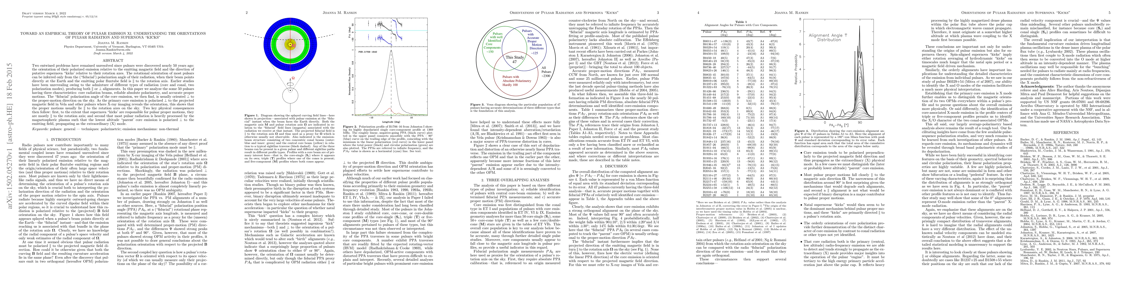 Two entwined problems have remained unresolved since pulsars were discovered nearly 50 years ago: the orientation of their polarized emission relative to the emitting magnetic field and the direction of putative supernova ``kicks' relative to their rotation axes. The rotational orientation of most pulsars can be inferred only from the (``fiducial') polarization angle of their radiation, when their beam points directly at the Earth and the emitting polar fluxtube field is $\parallel$ to the rotation axis. Earlier studies have been unrevealing owing to the admixture of different types of radiation (core and conal, two polarization modes), producing both $\parallel$ or $\perp$ alignments. In this paper we analyze the some 50 pulsars having three characteristics: core radiation beams, reliable absolute polarimetry, and accurate proper motions. The ``fiducial' polarization angle of the core emission, we then find, is usually oriented $\perp$ to the proper-motion direction on the sky. As the primary core emission is polarized $\perp$ to the projected magnetic field in Vela and other pulsars where X-ray imaging reveals the orientation, this shows that the proper motions usually lie $\parallel$ to the rotation axes on the sky. Two key physical consequences then follow: first, to the extent that supernova ``kicks' are responsible for pulsar proper motions, they are mostly $\parallel$ to the rotation axis; and second that most pulsar radiation is heavily processed by the magnetospheric plasma such that the lowest altitude ``parent' core emission is polarized $\perp$ to the emitting field, propagating as the extraordinary (X) mode.