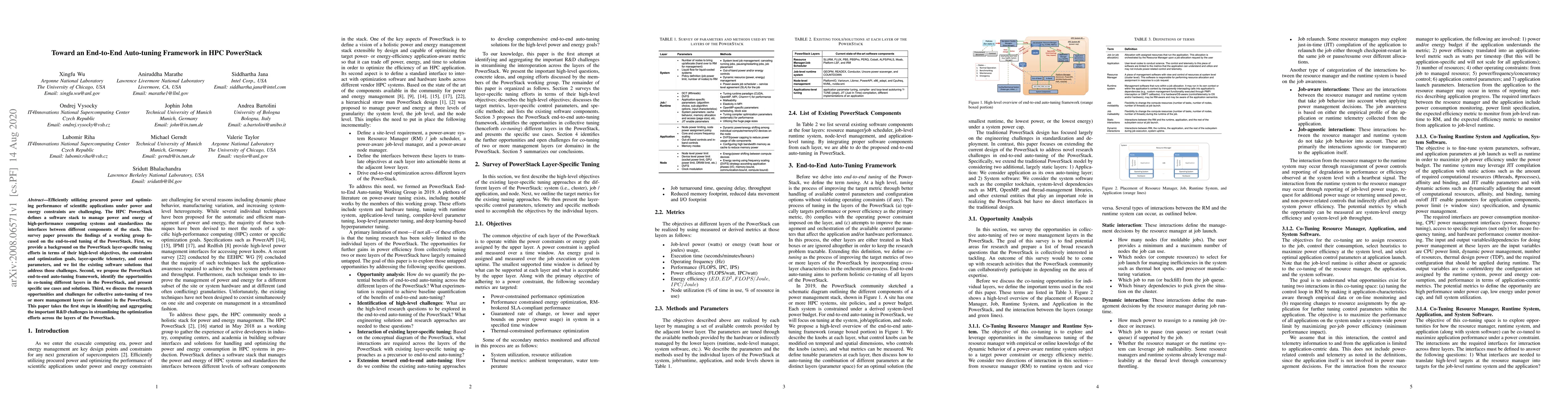 Efficiently utilizing procured power and optimizing performance of scientific applications under power and energy constraints are challenging. The HPC PowerStack defines a software stack to manage power and energy of high-performance computing systems and standardizes the interfaces between different components of the stack. This survey paper presents the findings of a working group focused on the end-to-end tuning of the PowerStack. First, we provide a background on the PowerStack layer-specific tuning efforts in terms of their high-level objectives, the constraints and optimization goals, layer-specific telemetry, and control parameters, and we list the existing software solutions that address those challenges. Second, we propose the PowerStack end-to-end auto-tuning framework, identify the opportunities in co-tuning different layers in the PowerStack, and present specific use cases and solutions. Third, we discuss the research opportunities and challenges for collective auto-tuning of two or more management layers (or domains) in the PowerStack. This paper takes the first steps in identifying and aggregating the important R&D challenges in streamlining the optimization efforts across the layers of the PowerStack.