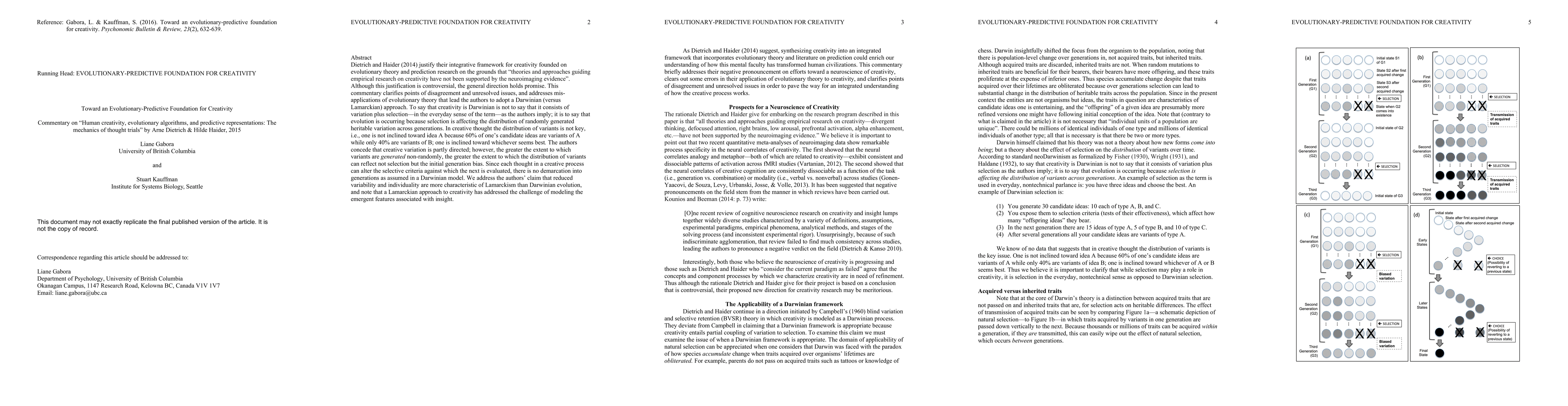 Dietrich and Haider (2014) justify their integrative framework for creativity founded on evolutionary theory and prediction research on the grounds that "theories and approaches guiding empirical research on creativity have not been supported by the neuroimaging evidence". Although this justification is controversial, the general direction holds promise. This commentary clarifies points of disagreement and unresolved issues, and addresses mis-applications of evolutionary theory that lead the authors to adopt a Darwinian (versus Lamarckian) approach. To say that creativity is Darwinian is not to say that it consists of variation plus selection---in the everyday sense of the term---as the authors imply; it is to say that evolution is occurring because selection is affecting the distribution of randomly generated heritable variation across generations. In creative thought the distribution of variants is not key, i.e., one is not inclined toward idea A because 60% of one's candidate ideas are variants of A while only 40% are variants of B; one is inclined toward whichever seems best. The authors concede that creative variation is partly directed; however, the greater the extent to which variants are generated non-randomly, the greater the extent to which the distribution of variants can reflect not selection but the initial generation bias. Since each thought in a creative process can alter the selective criteria against which the next is evaluated, there is no demarcation into generations as assumed in a Darwinian model. We address the authors' claim that reduced variability and individuality are more characteristic of Lamarckism than Darwinian evolution, and note that a Lamarckian approach to creativity has addressed the challenge of modeling the emergent features associated with insight.