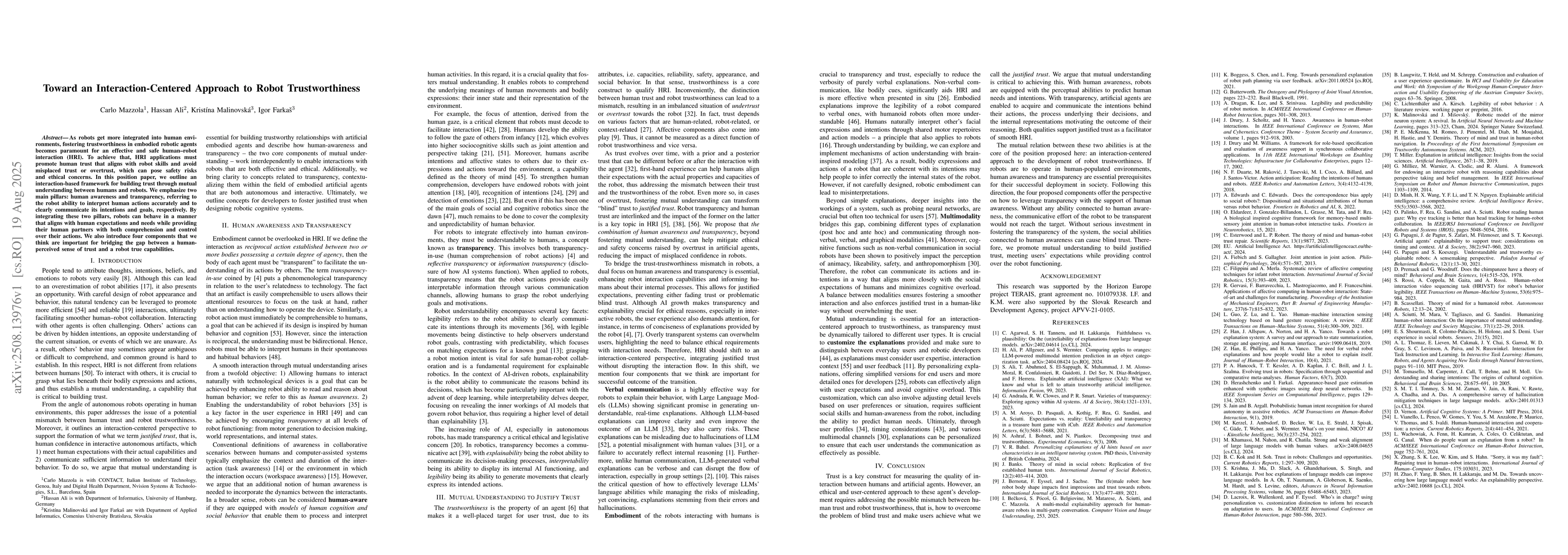 The paper proposes an interaction-centered approach to build robot trustworthiness, emphasizing human awareness and transparency in robot design. It introduces four components to align human expectations with robot capabilities, ensuring safe and ethical human-robot interaction.