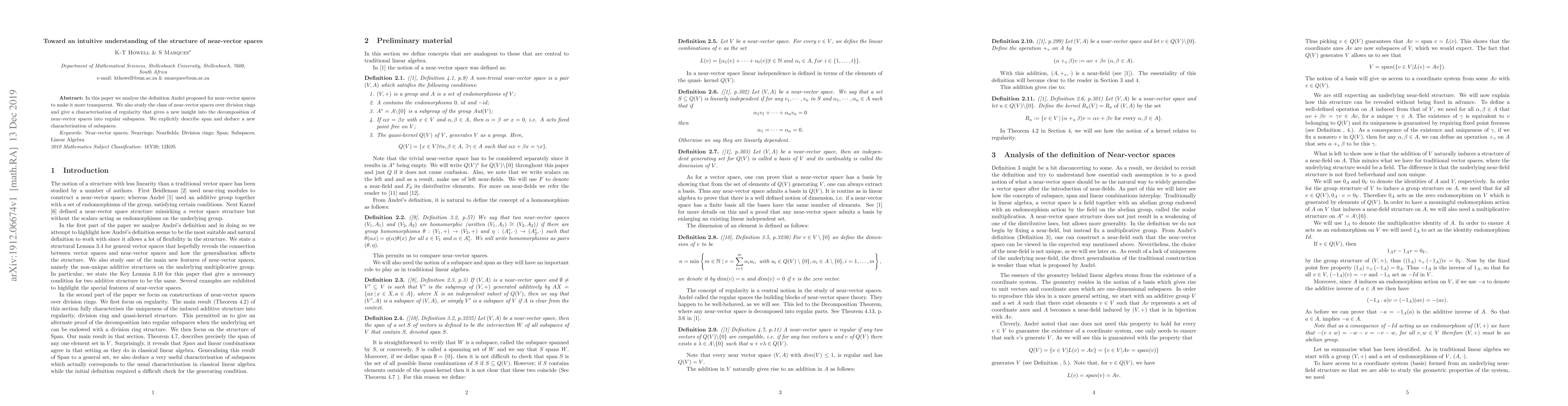 In this paper, we analyze the definition Andr\'e proposed for near-vector spaces to make it more transparent. We also study the class of near-vector spaces over division rings and give a characterization of regularity that gives a new insight into the decomposition of near-vector spaces into regular subspaces. We explicitly describe span and deduce a new characterization of subspaces.
