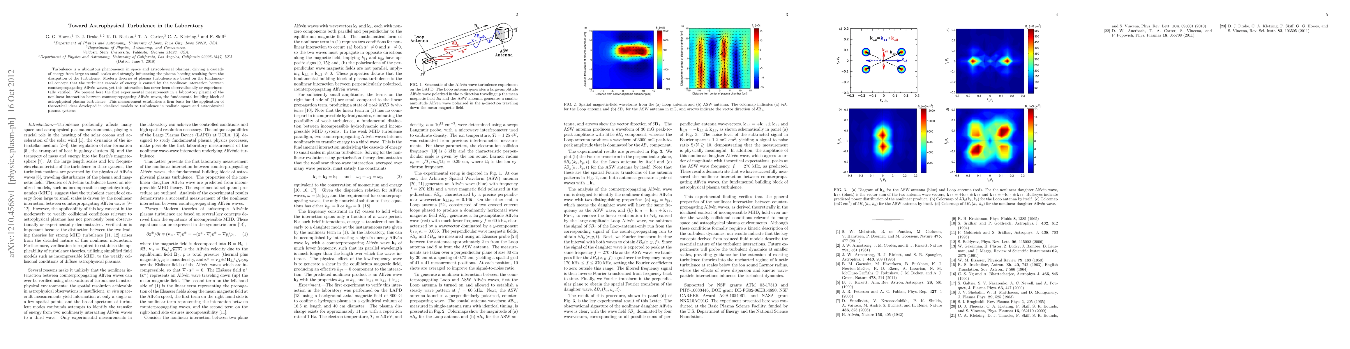 This paper reports the first laboratory measurement of the nonlinear interaction between counterpropagating Alfven waves in plasma, confirming a fundamental concept of astrophysical turbulence. This breakthrough validates theoretical models and enhances understanding of turbulence in space and astrophysical plasmas.