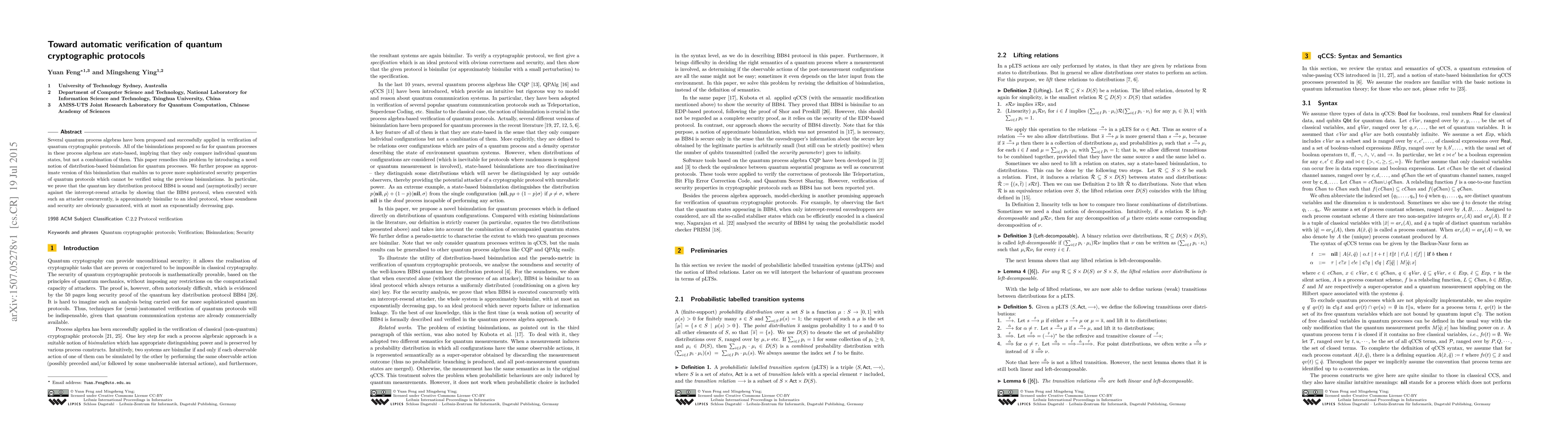 This paper introduces a novel distribution-based bisimulation for quantum processes, enabling verification of complex security properties beyond state-based comparisons. It demonstrates the soundness and security of the BB84 quantum key distribution protocol against intercept-resend attacks through an approximate bisimulation.