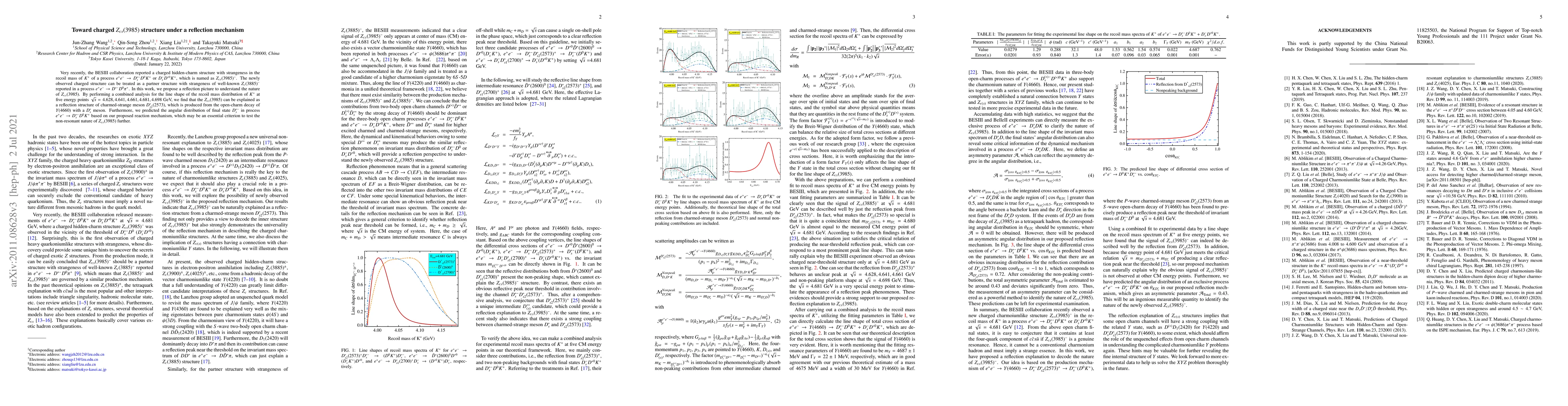 Researchers propose that a recently discovered charged hidden-charm structure $Z_{cs}(3985)$ is actually a reflection of the charmed-strange meson $D_{s2}^{*}(2573)$. This new understanding offers insight into its nature and could help test whether it's non-resonant.