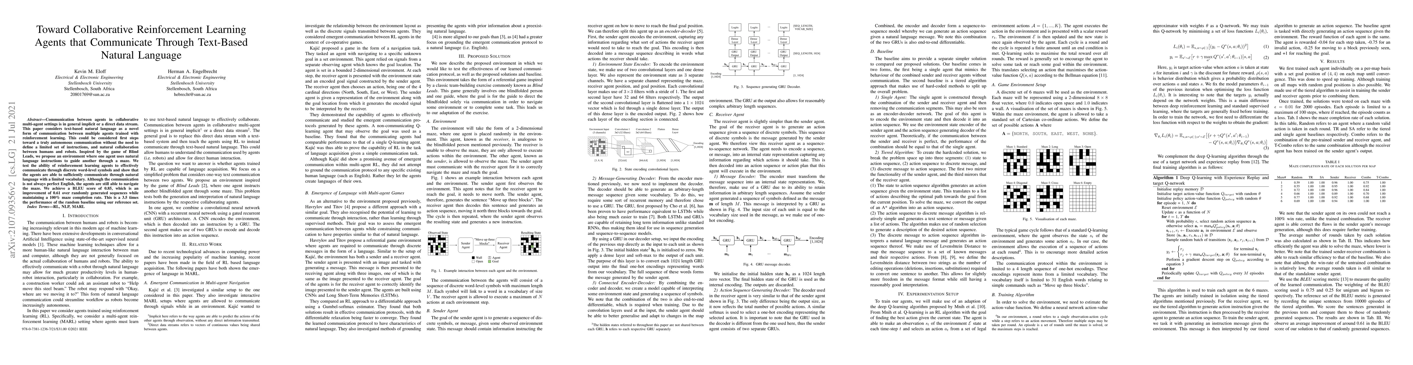 This paper explores using text-based natural language for communication between reinforcement learning agents in a collaborative multi-agent setting, demonstrating their ability to navigate a maze using natural language instructions. The agents achieve a BLEU score of 0.85, significantly outperforming random baselines, indicating effective communication despite imperfect language.