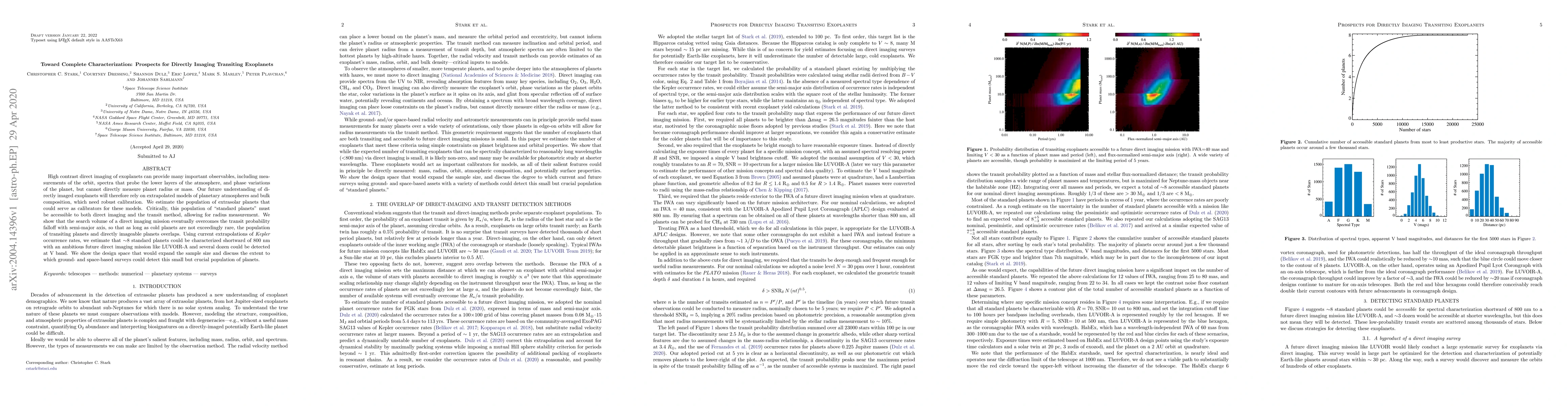 High contrast direct imaging of exoplanets can provide many important observables, including measurements of the orbit, spectra that probe the lower layers of the atmosphere, and phase variations of the planet, but cannot directly measure planet radius or mass. Our future understanding of directly imaged exoplanets will therefore rely on extrapolated models of planetary atmospheres and bulk composition, which need robust calibration. We estimate the population of extrasolar planets that could serve as calibrators for these models. Critically, this population of "standard planets" must be accessible to both direct imaging and the transit method, allowing for radius measurement. We show that the search volume of a direct imaging mission eventually overcomes the transit probability falloff with semi-major axis, so that as long as cold planets are not exceedingly rare, the population of transiting planets and directly imageable planets overlaps. Using current extrapolations of Kepler occurrence rates, we estimate that ~8 standard planets could be characterized shortward of 800 nm with an ambitious future direct imaging mission like LUVOIR-A and several dozen could be detected at V band. We show the design space that would expand the sample size and discuss the extent to which ground- and space-based surveys could detect this small but crucial population of planets.