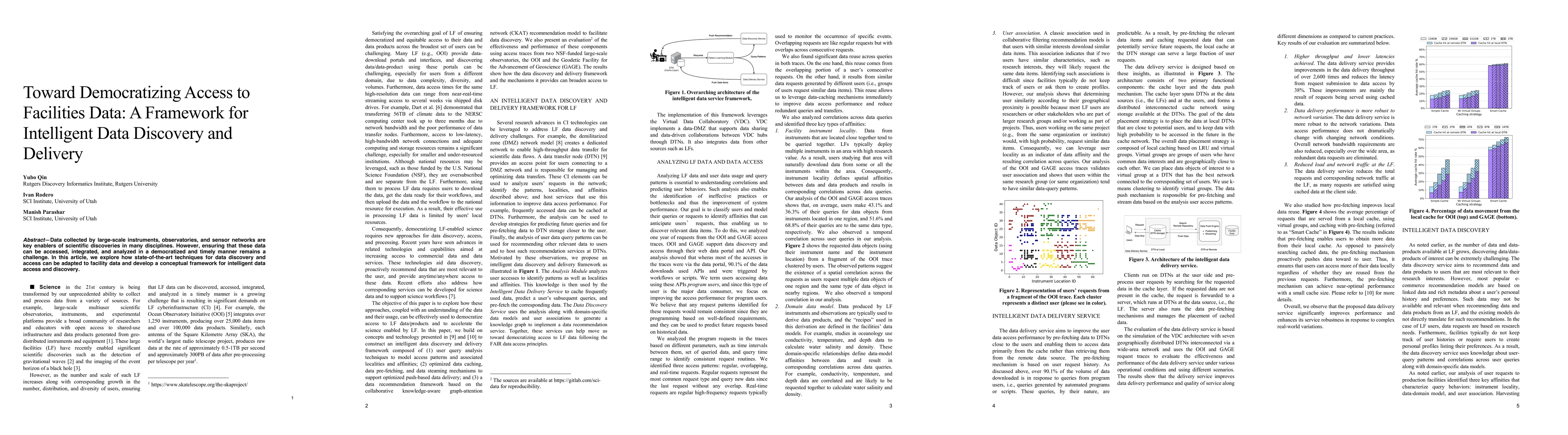 Data collected by large-scale instruments, observatories, and sensor networks are key enablers of scientific discoveries in many disciplines. However, ensuring that these data can be accessed, integrated, and analyzed in a democratized and timely manner remains a challenge. In this article, we explore how state-of-the-art techniques for data discovery and access can be adapted to facility data and develop a conceptual framework for intelligent data access and discovery.