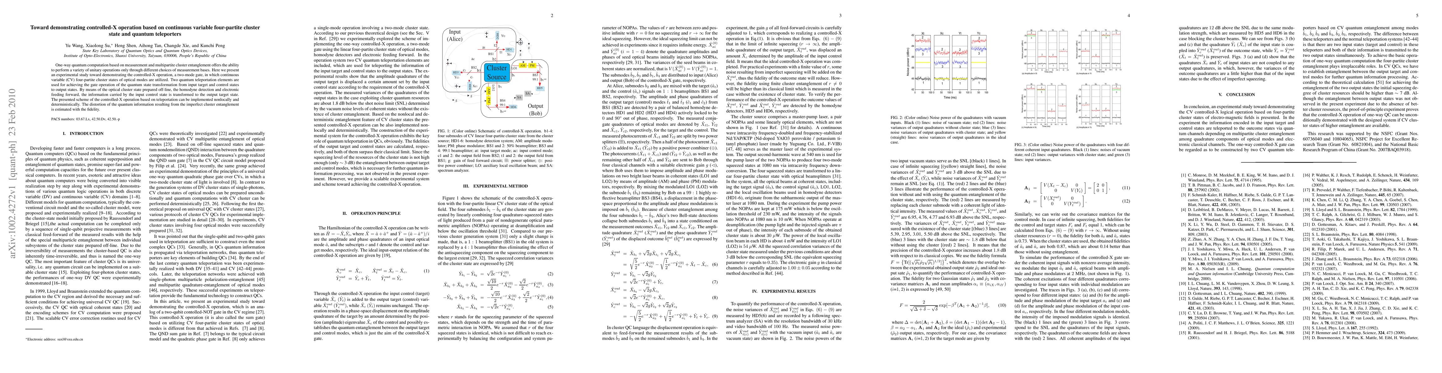 This paper presents an experimental study demonstrating a controlled-X operation using continuous variable four-partite cluster states and quantum teleportation. The scheme employs optical cluster states, homodyne detection, and electronic feedback to transform input control states to output target states, achieving a nonlocal and deterministic gate operation.